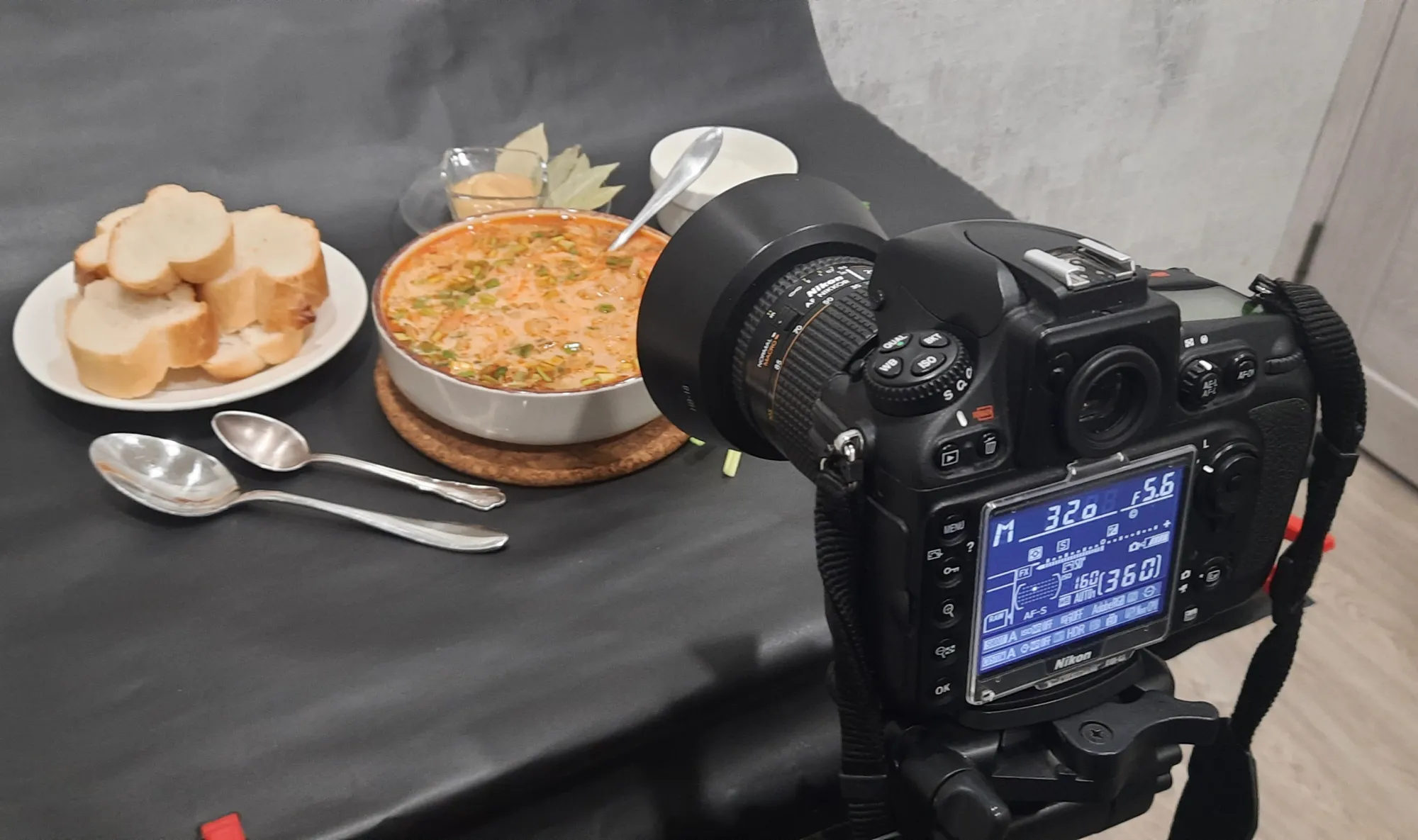 В своё время снимала еду (ради посуды, заказчик посуду производит) со стандартной светово...