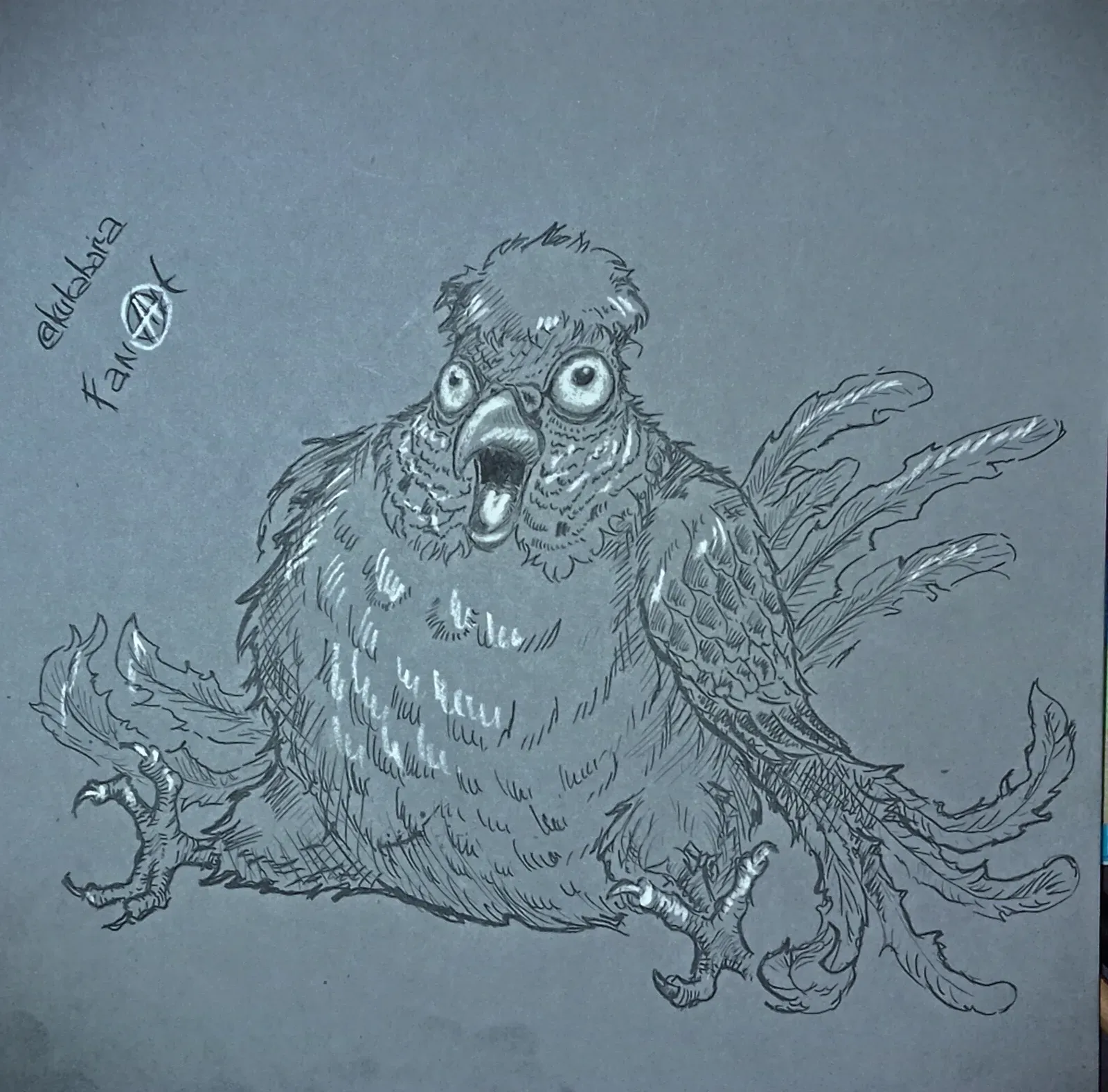 Так, три глаза вижу, клюв, крылья, лапы тоже. А с чем не попала тогда? )