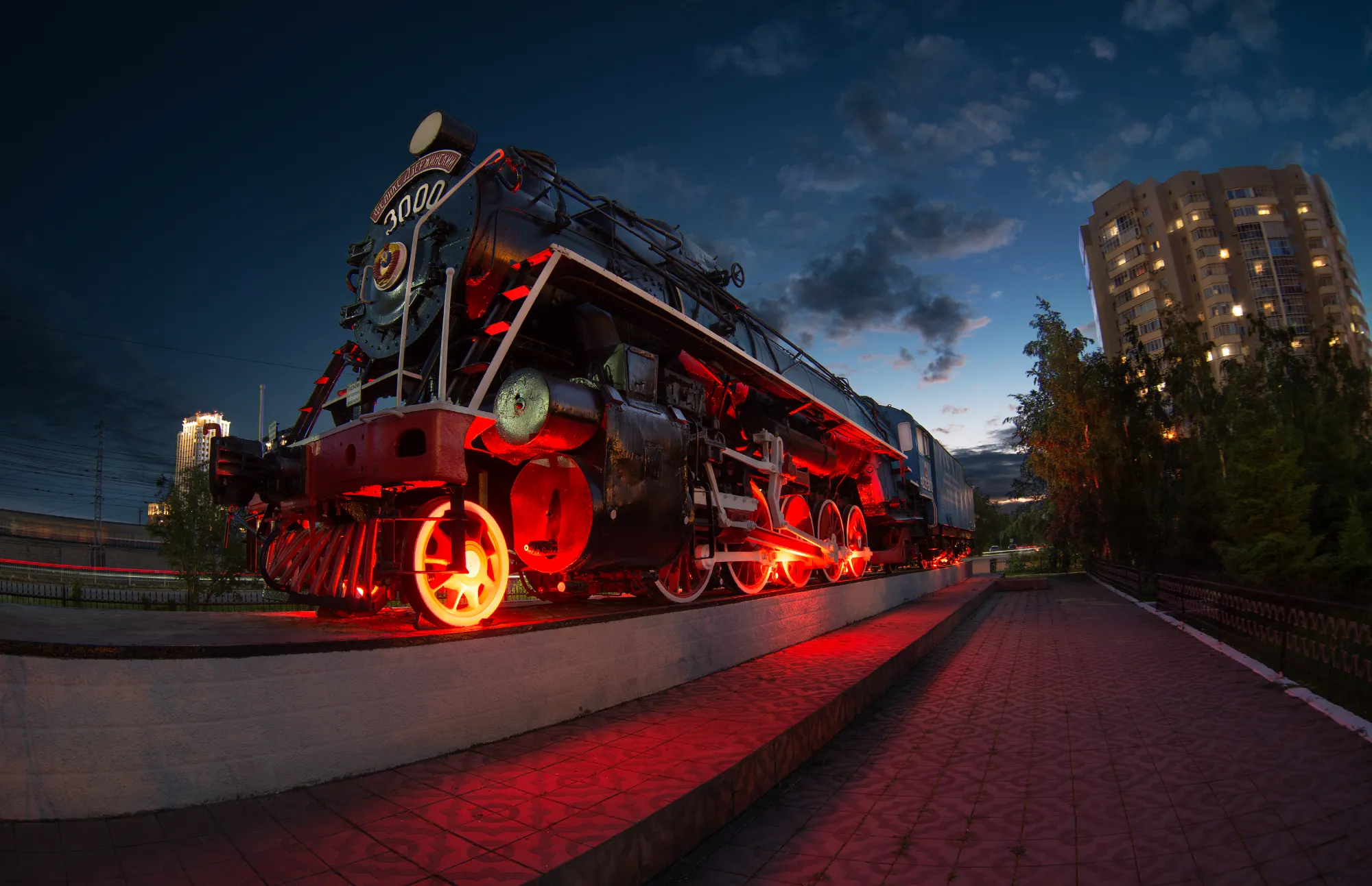 А паровоз - шикарен! Ни разу не видел у него такой подсветки. Это же над пр-том Димитрова перед въездом на мост?