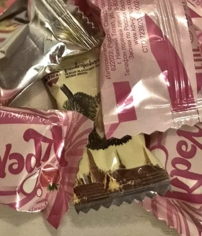 я до этого ела только вафли с дурианом, они ещё лайтовее были. шо там, шо там, мне этот вкус напомнил подуставший такой подсгнивший лук с ноткой карамели :D