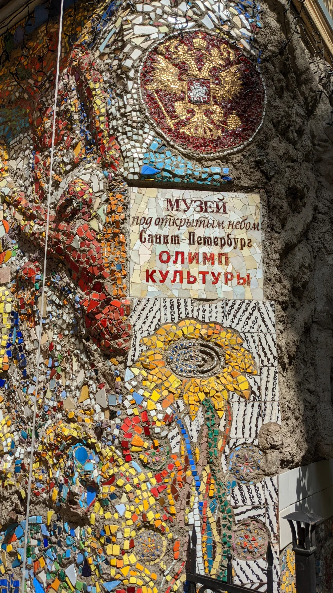 Про мозаичный дворик мне рассказали ещё когда я была в Питере весной, но тогда попасть туда не успела. Поэтому на этот раз побывала там дважды: сначала одна, потому что после посещения Русского музея ноги понесли меня туда, несмотря на ливень. А второй раз - с мужем: надо же показать ему эту красоту!
