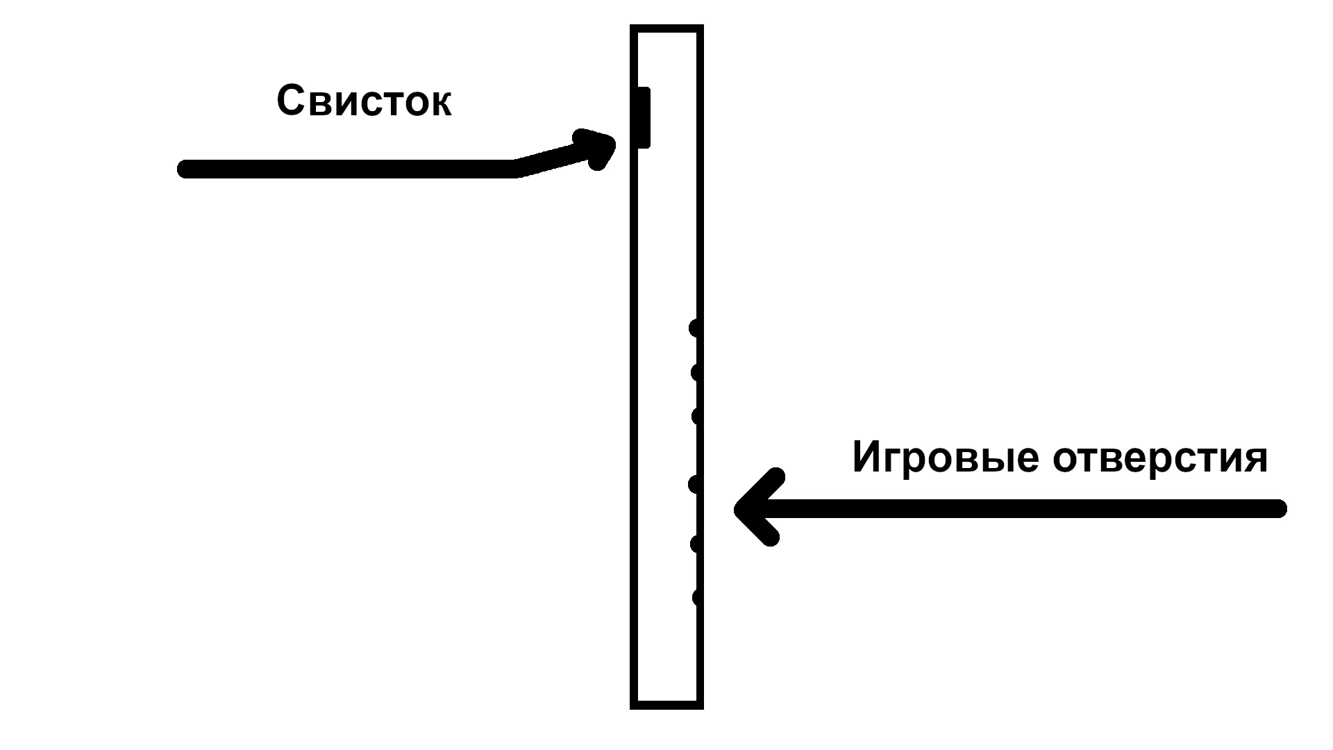Так что же в свистке сулинга такого особенного? Во-первых он расположен со стороны, обратной игровым отверстиям.