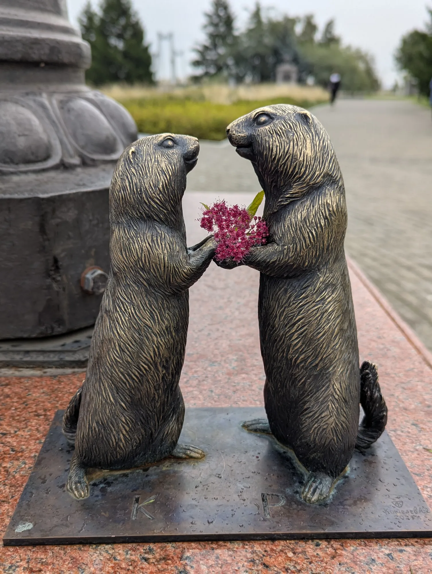 Следующие суслики, Р. и К., стоят возле памятника Резанову. Красноярцам дали выбор самостоятельно для себя их назвать, но все прекрасно понимают, что это Резанов и Кончита.