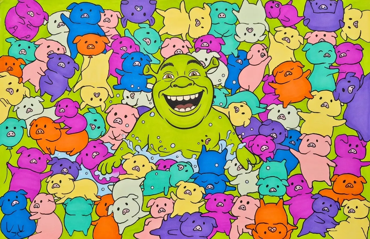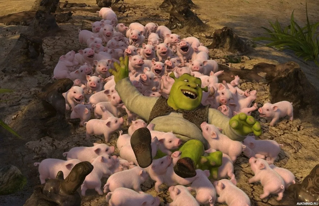 Вот!вот! Сразу скока пересечений. Шрек большой, а свины на нём маленькие... бритые морские свинки