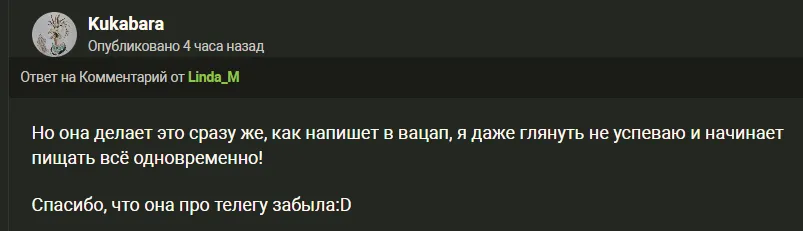 Но она делает это сразу же, как напишет в вацап, я даже глянуть не успеваю и начинает пищать всё одновременно!