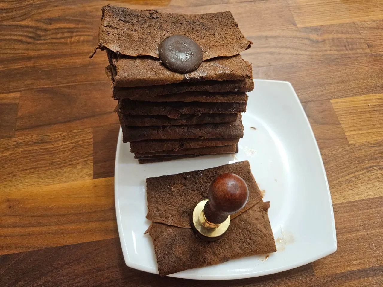 А вот с лицевой стороной весьма проблематично, пытаемся угадать чтобы печать была еле-еле нагрета и температуры хватило, чтобы расплавить шоколад, но он сразу застыл. В следующий раз буду искать возможность сделать силиконовую формочку под заливку темперированным шоколадом.