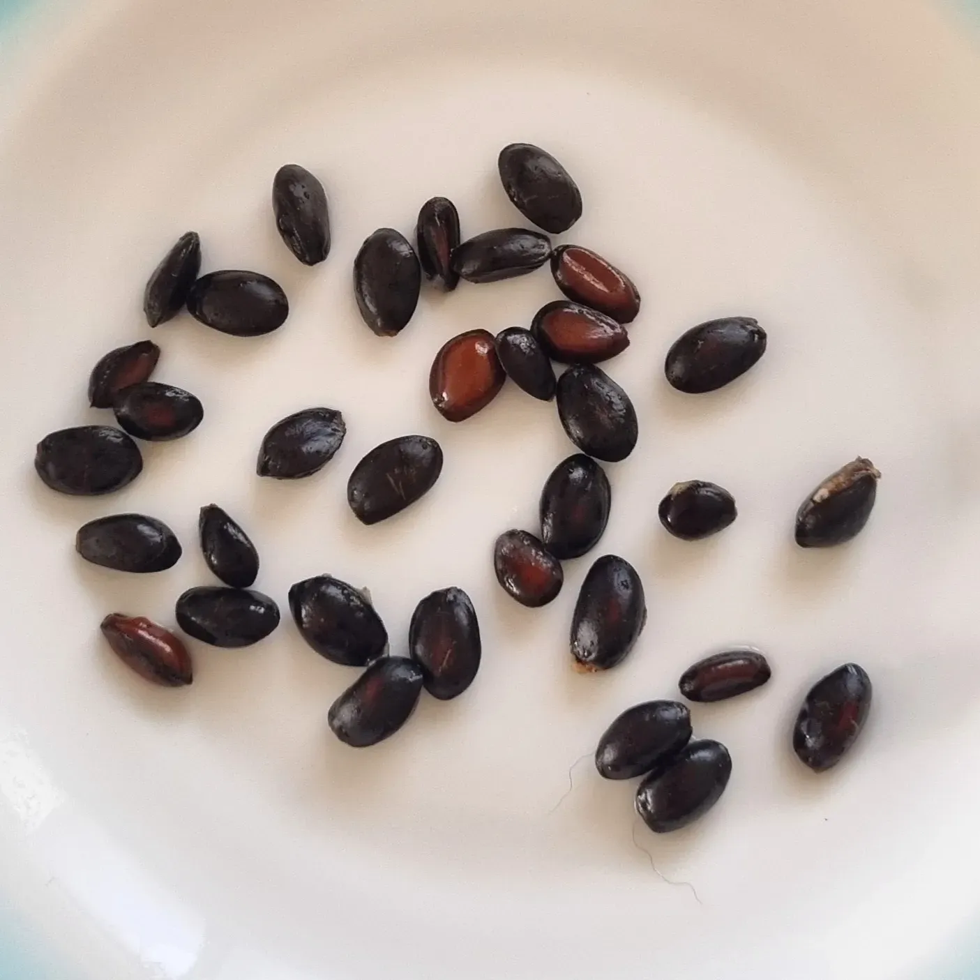 Семена у плода токсичные, есть их нельзя. Зато их много. Я насчитала около 70 в одном яблоке (на фото - семена из половинки плода).