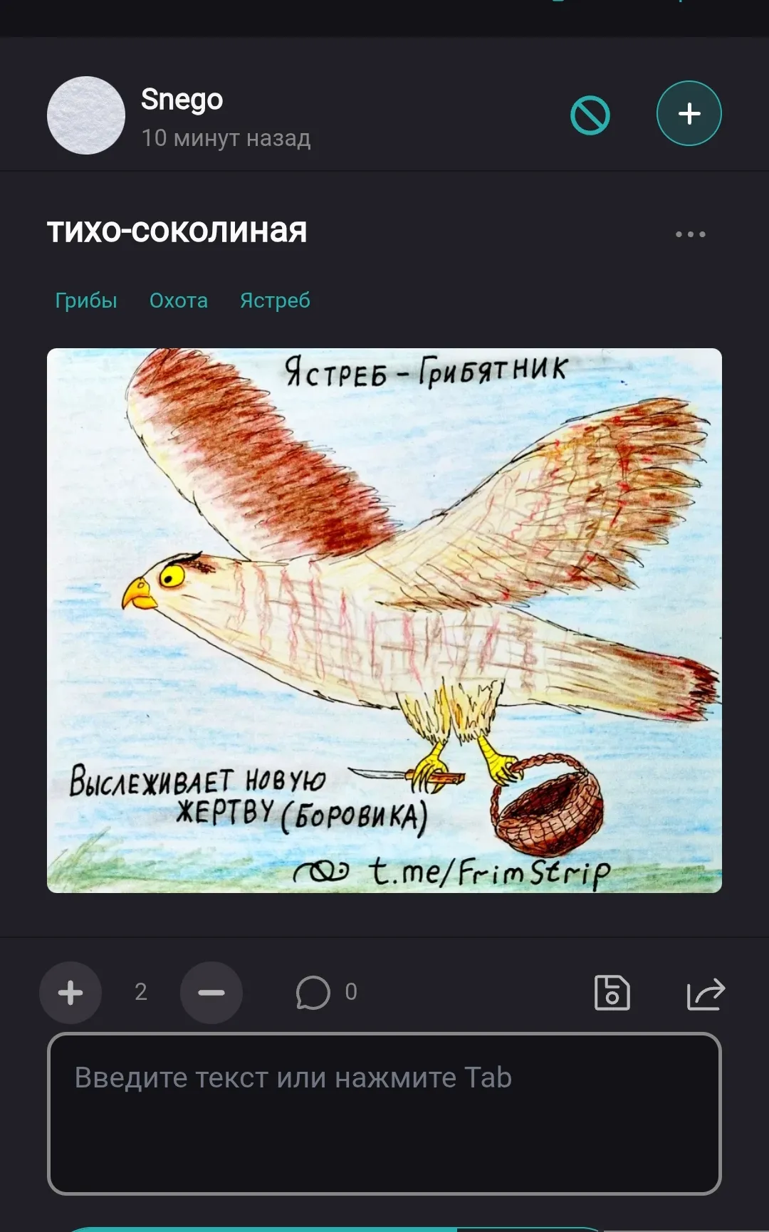 FrimStrip Опубликовано 2 месяца назад [моё] Юмор Комиксы Авторский комикс Ястребиные Тихая соколиная охота Читать дальше...