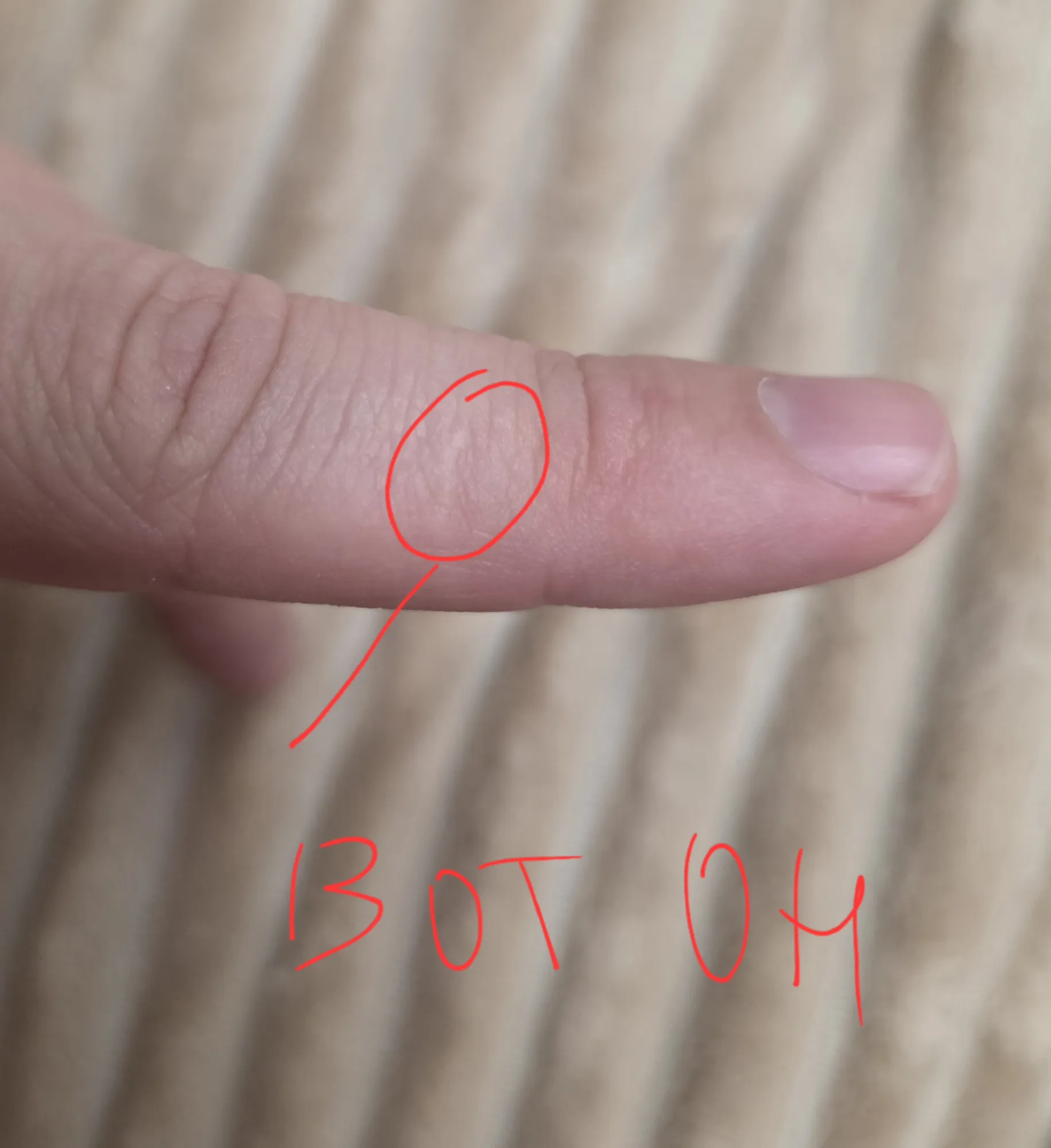 Я нашла шрам на безымянном пальце, пока фоткала царапины :D