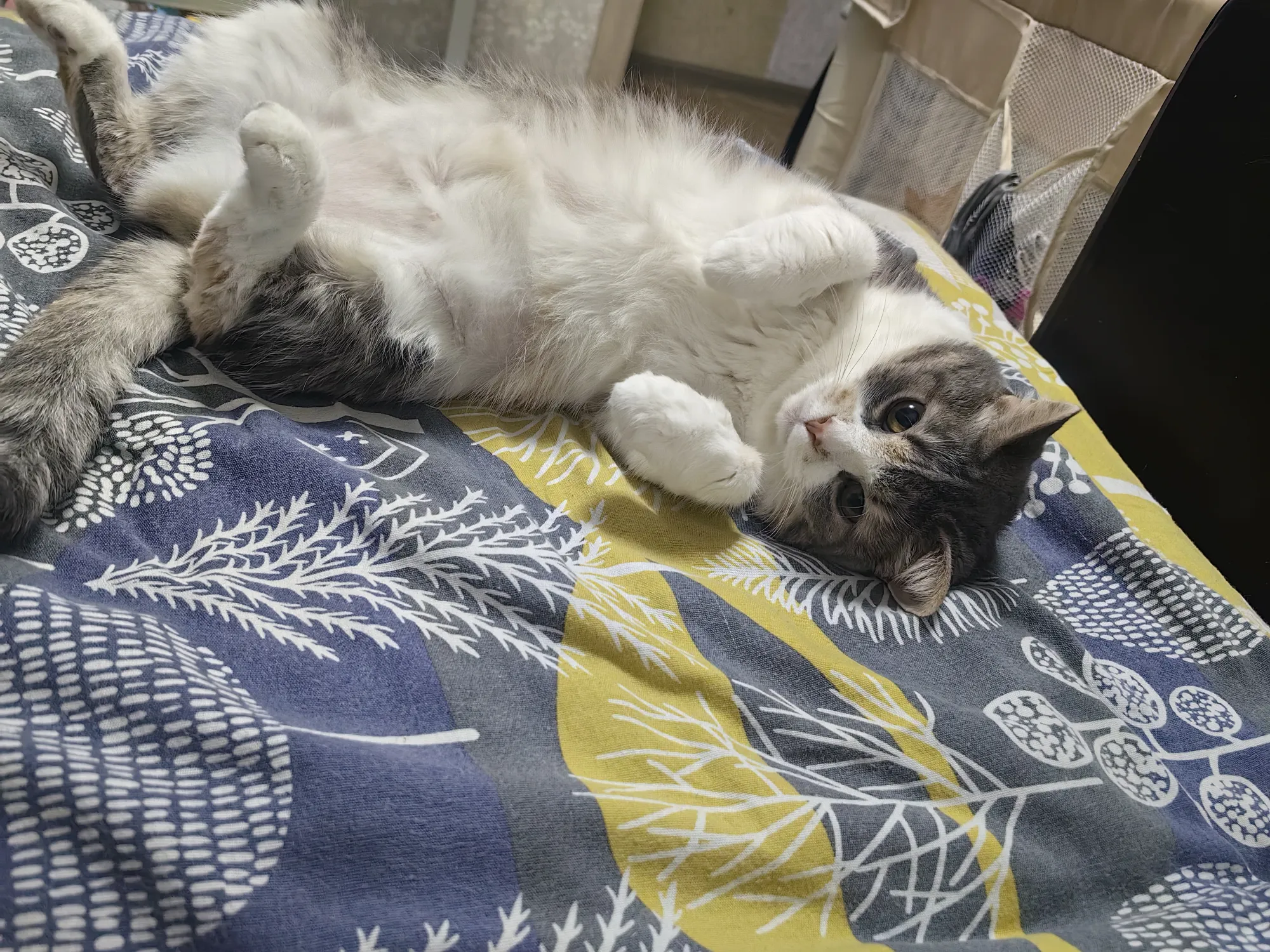 Не знаю. Не жалуется. Но передние лапы трогать не даёт. Даже, вишь, в воротнике стричь приходится. С задними таких проблем нет