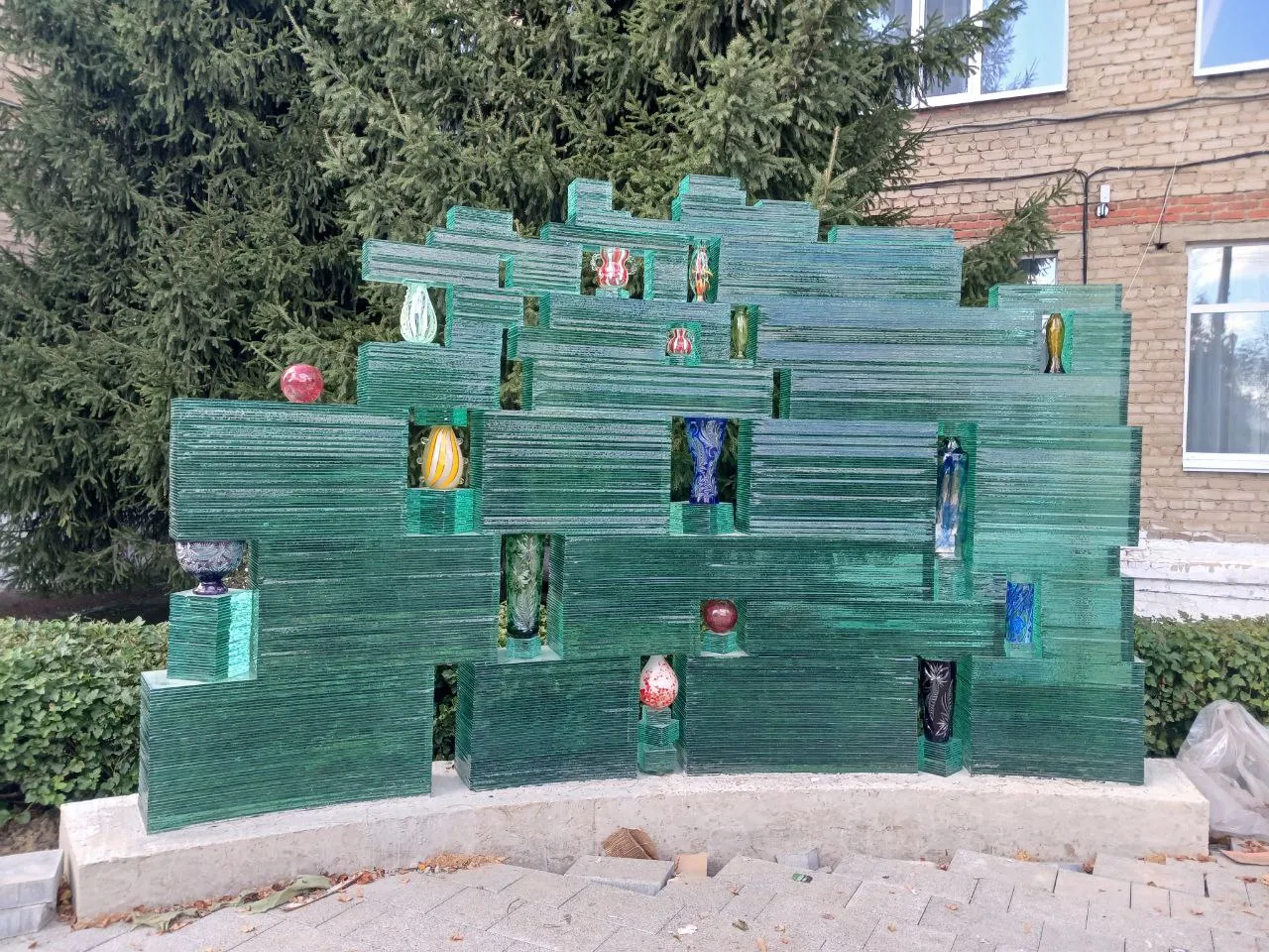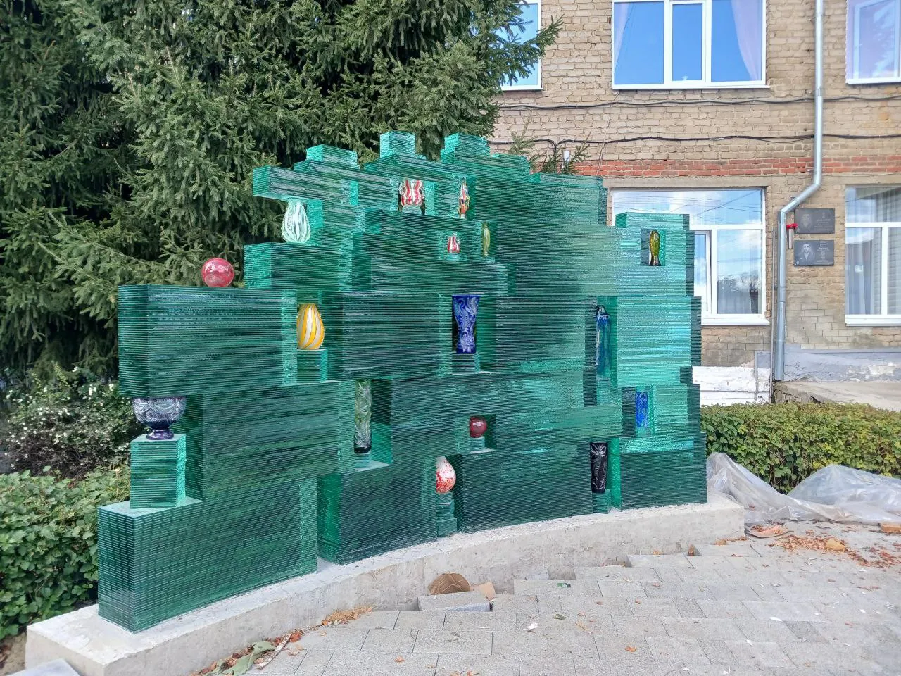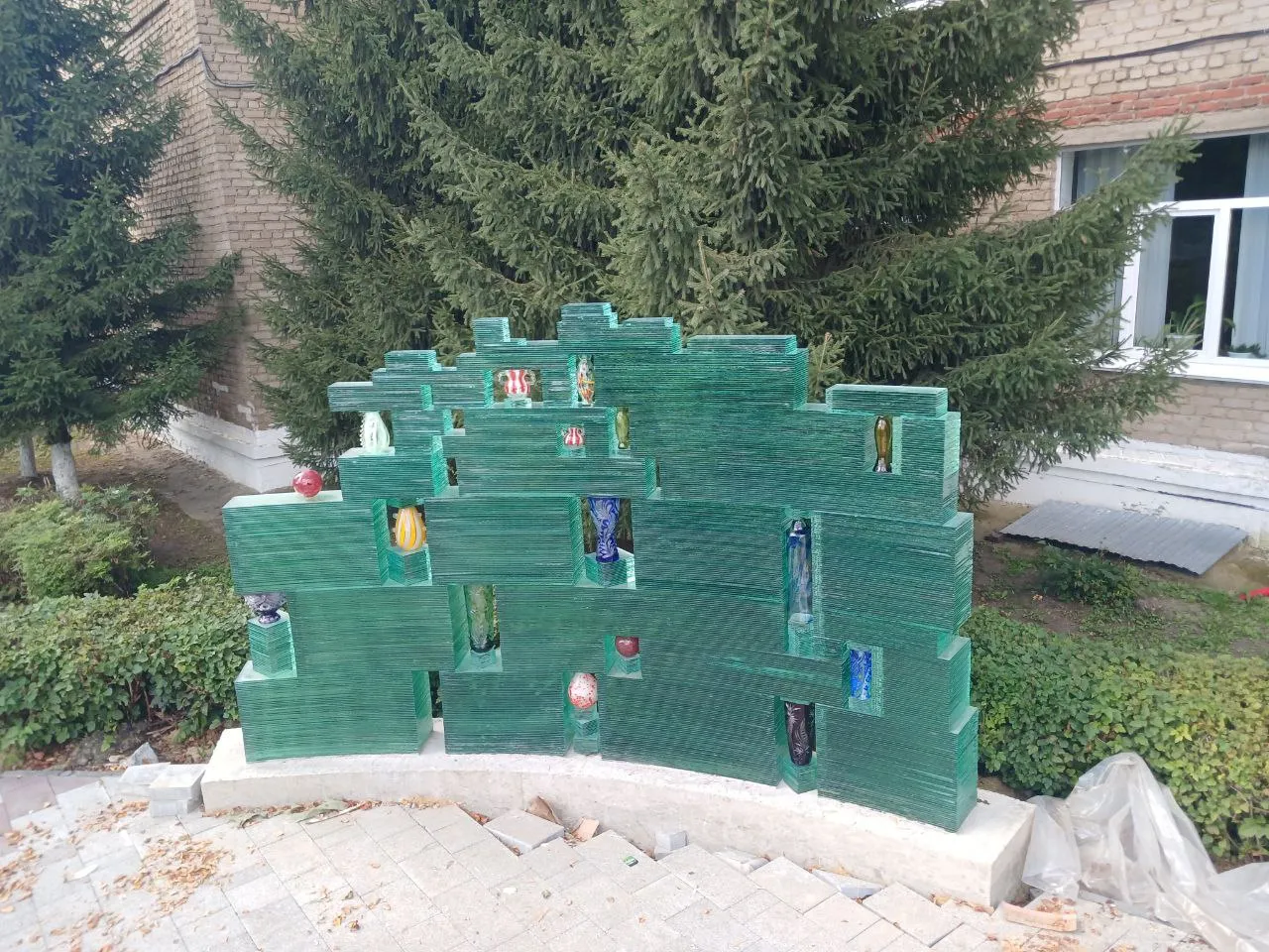 Между делом ставили скульптуру. Пока сложена основа, еще гравировка будет. Собирается из листового стекла, по 10 - 15 слоев за раз, не более. Если больше то может "поехать". А вес я вам скажу не малый.... общая масса чтото около 3,5 тонн....