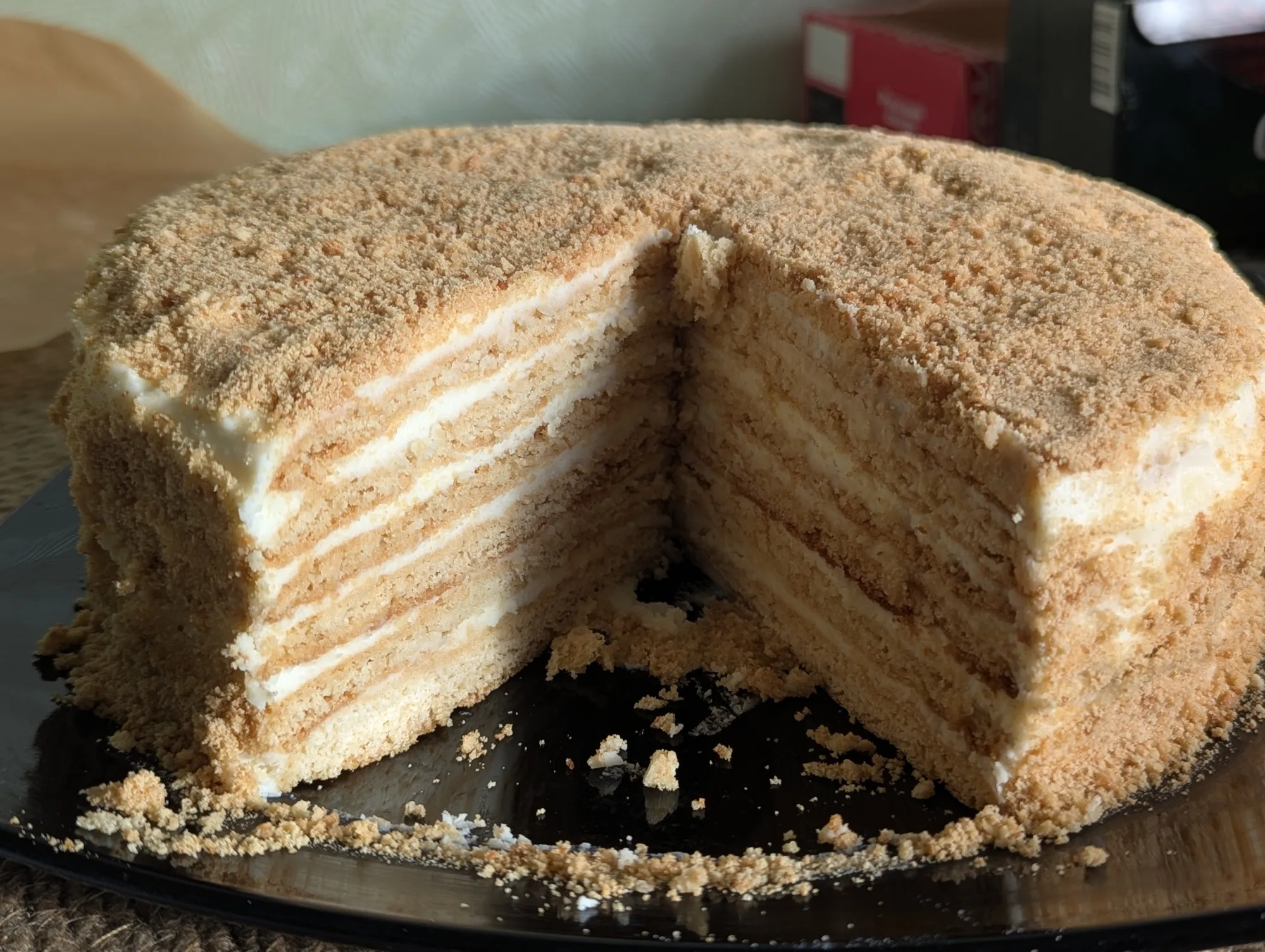Поменьше сахара в коржи надо. Я сделала меньше, чем в рецепте, но всё равно мне многовато) А так очень вкусно, люблю медовики всем сердечком.