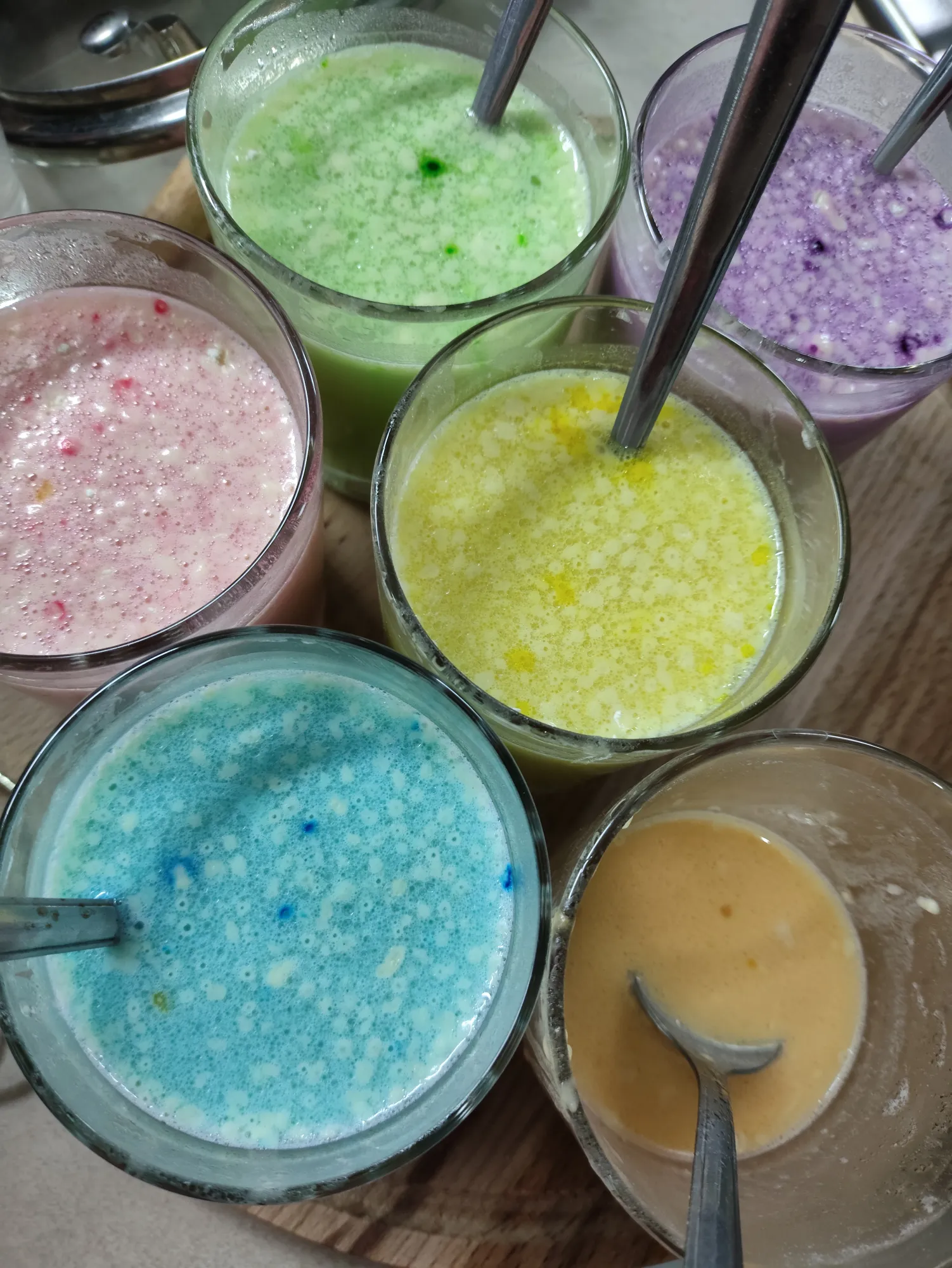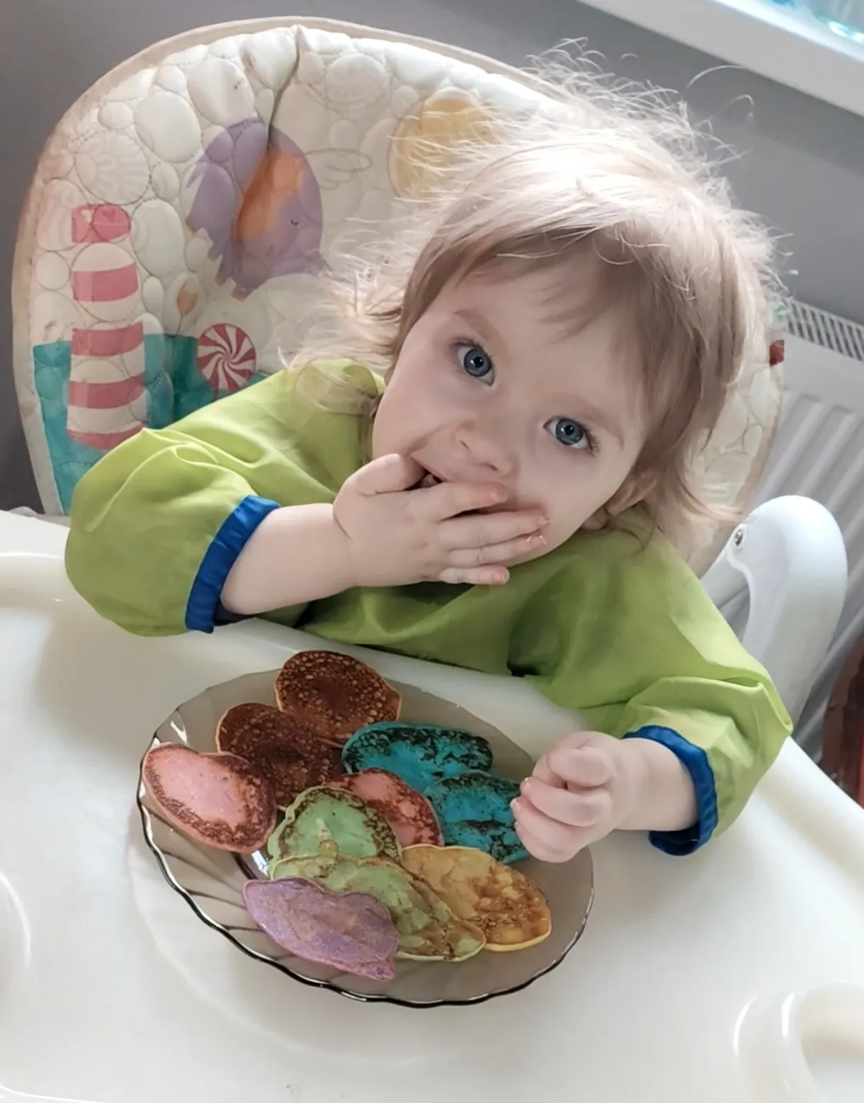 Доча решила на блинном тесте сделать много маленьких цветных блинчиков)🥞