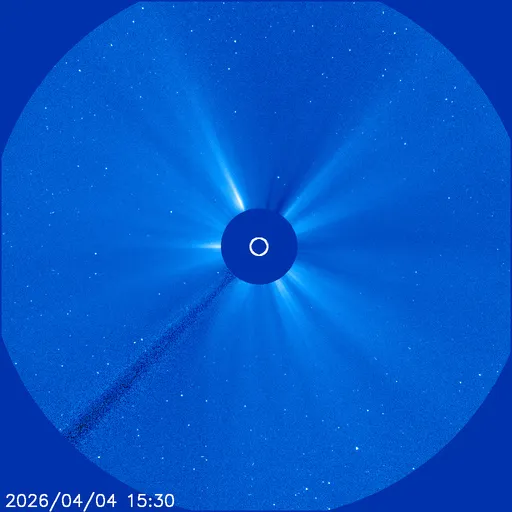 Сегодня, 4 апреля 2026 года, комета C/2026 A1 (MAPS) достигает перигелия – точки максимального сближения с Солнцем. Около 14:22 по всемирному времени она пройдёт на расстоянии всего 161 000 км от солнечной фотосферы, пронзив раскалённую корону нашей звезды. Это меньше половины расстояния от Земли до Луны. Комета может вспыхнуть ярче Венеры – а может и не пережить встречу с Солнцем.