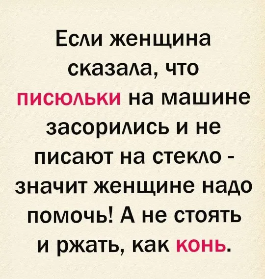 Правильно! Если писюльки засорились, не веди себя как дурак - нассы на стекло сам!