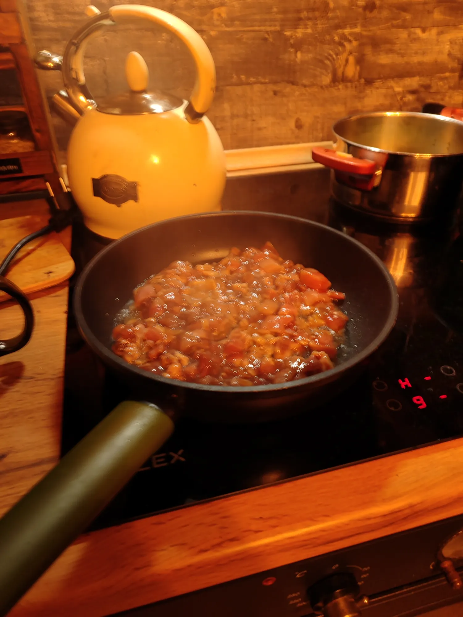 Сильно не нужно, буквально на полчаса закладываем. Потом нужно супер сильно разогреть сковороду и вывалить туда мясо, чтоб прям до жареной корочки, а потом убавить огонь, вылить туда соус, в котором всё мариновалось, накрыть крышкой и тушить.