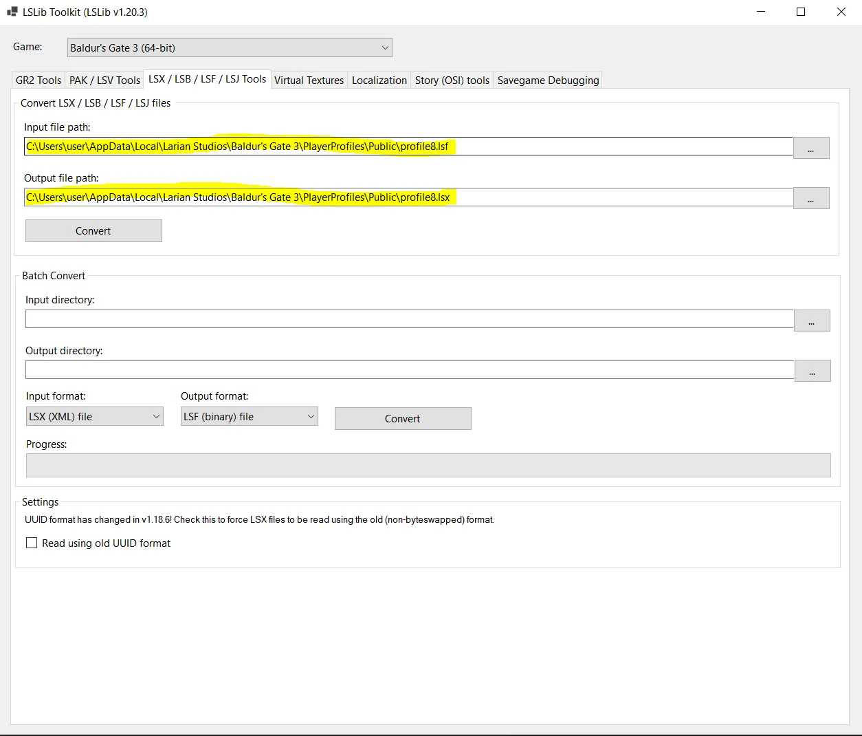 C:\Users\user\AppData\Local\Larian Studios\Baldur's Gate 3\PlayerProfiles\Public\profile8.lsf
