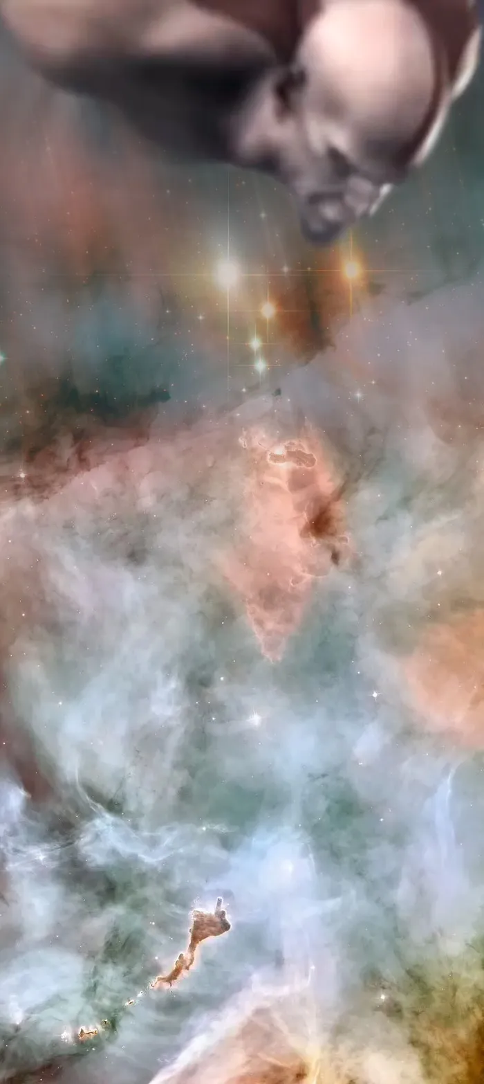 Внизу снимка — две яркие звезды: WR 25 и Tr16-244. Они входят в состав звёздного скопления Трумплера 16, которое, в свою очередь, «утоплено» в гигантской туманности Карина — колоссальном облаке газа и пыли, расположенном примерно в 7500 световых годах от нас, в созвездии Киля.