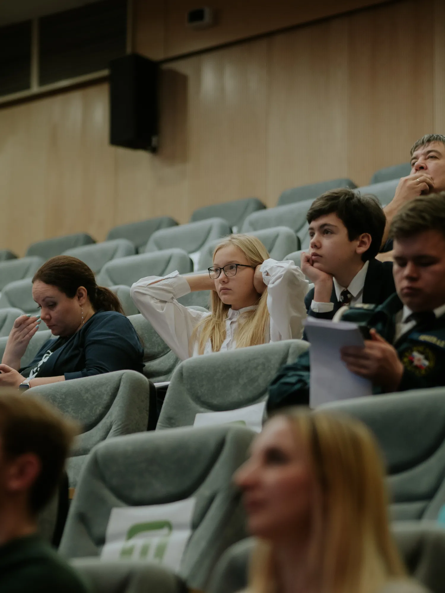 Дядечка интересный и студенты один внимательно, а мадам как будто уши заткнула :)