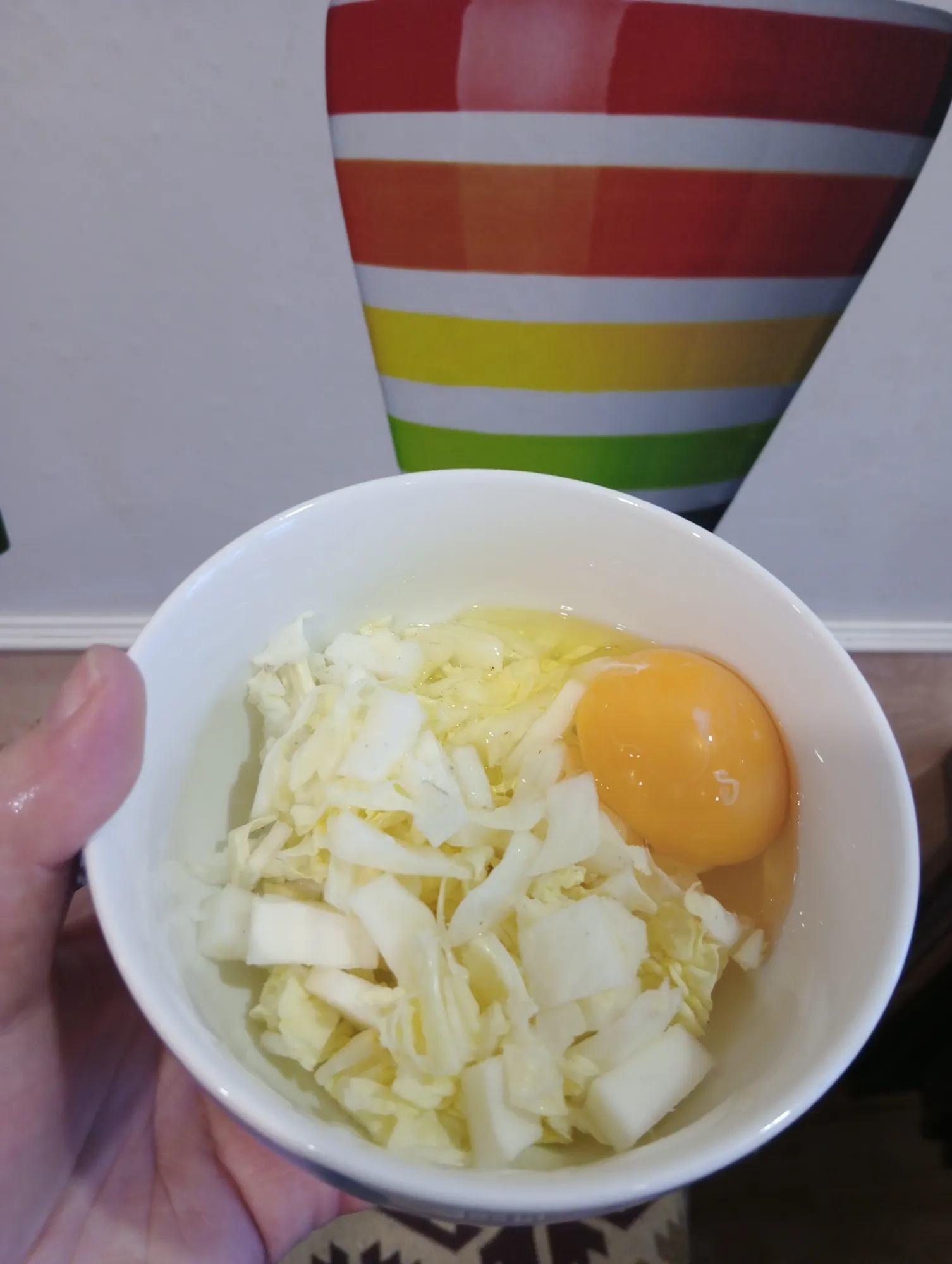 Собстно, все продукты - это лист пекинки, одно яйцо и немного подсолнечного масла