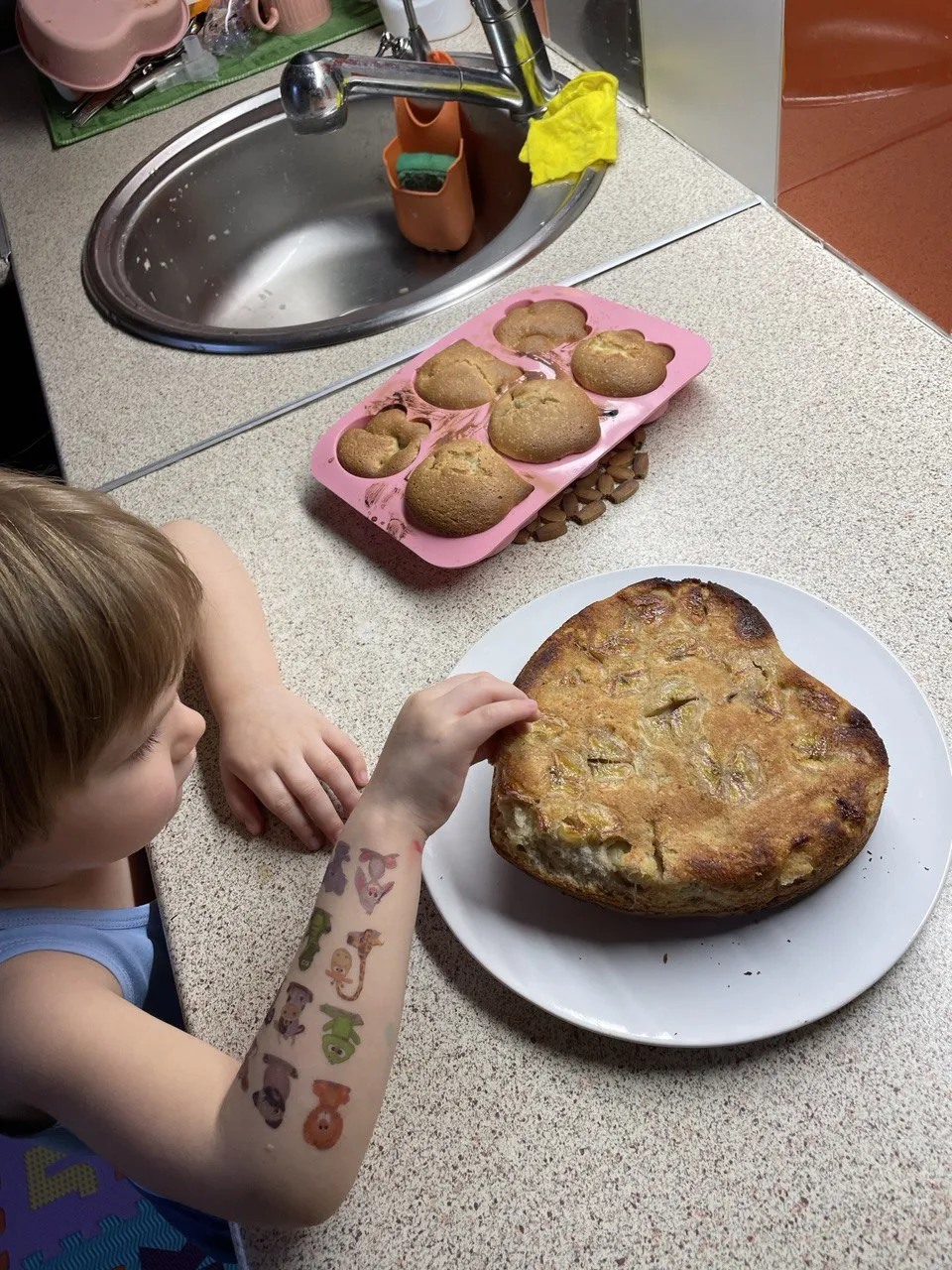 Вчера вон, наконец-то до библиотеки дошёл, начал возрождать традицию читать сказки перед сном. А сегодня вишь, пирог испекли))