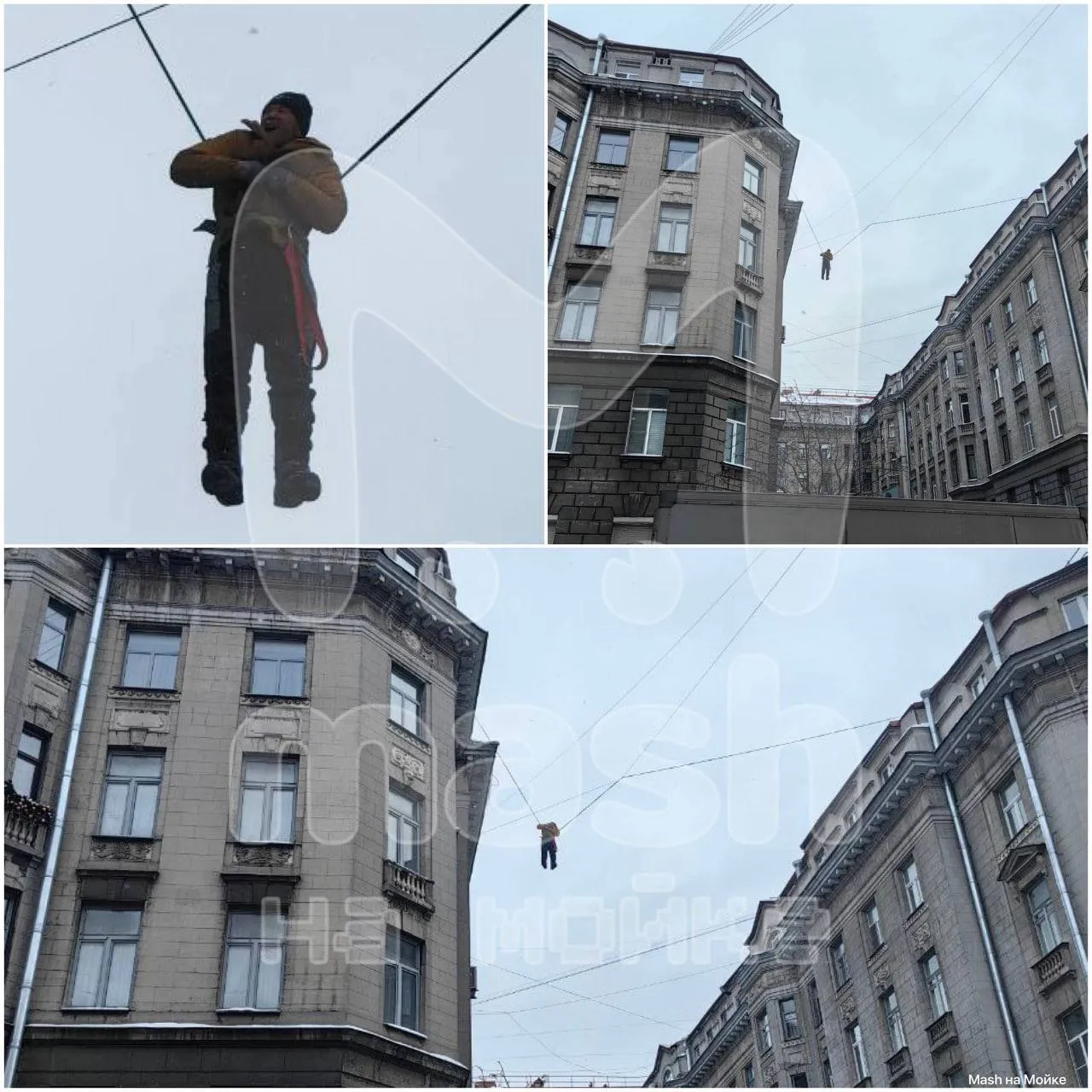 А уже всё! А уже понеслась! Тут вот вообще снег с крыши скидывают, всё перекрыли, на всю улицу в рупор орут