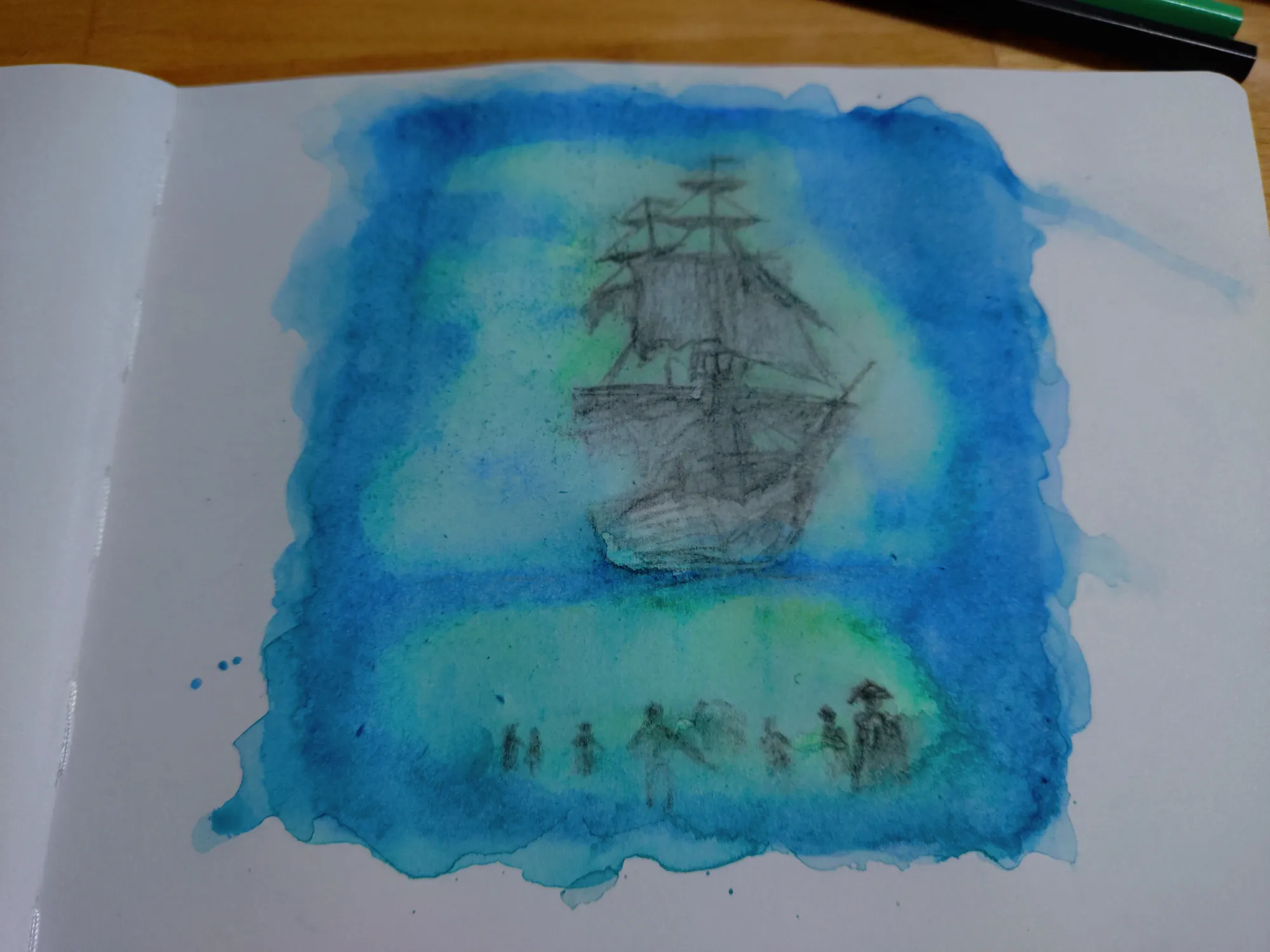 Продолжаю осваивать акварельные карандаши. В этот раз мимо пробегал туториал, где для ускорения процесса использовали фен. Идея мне понравилась, применила: 1 ускоряет процесс. 2 можно поиграться разбегающимися каплями. Одну не успела поймать :).