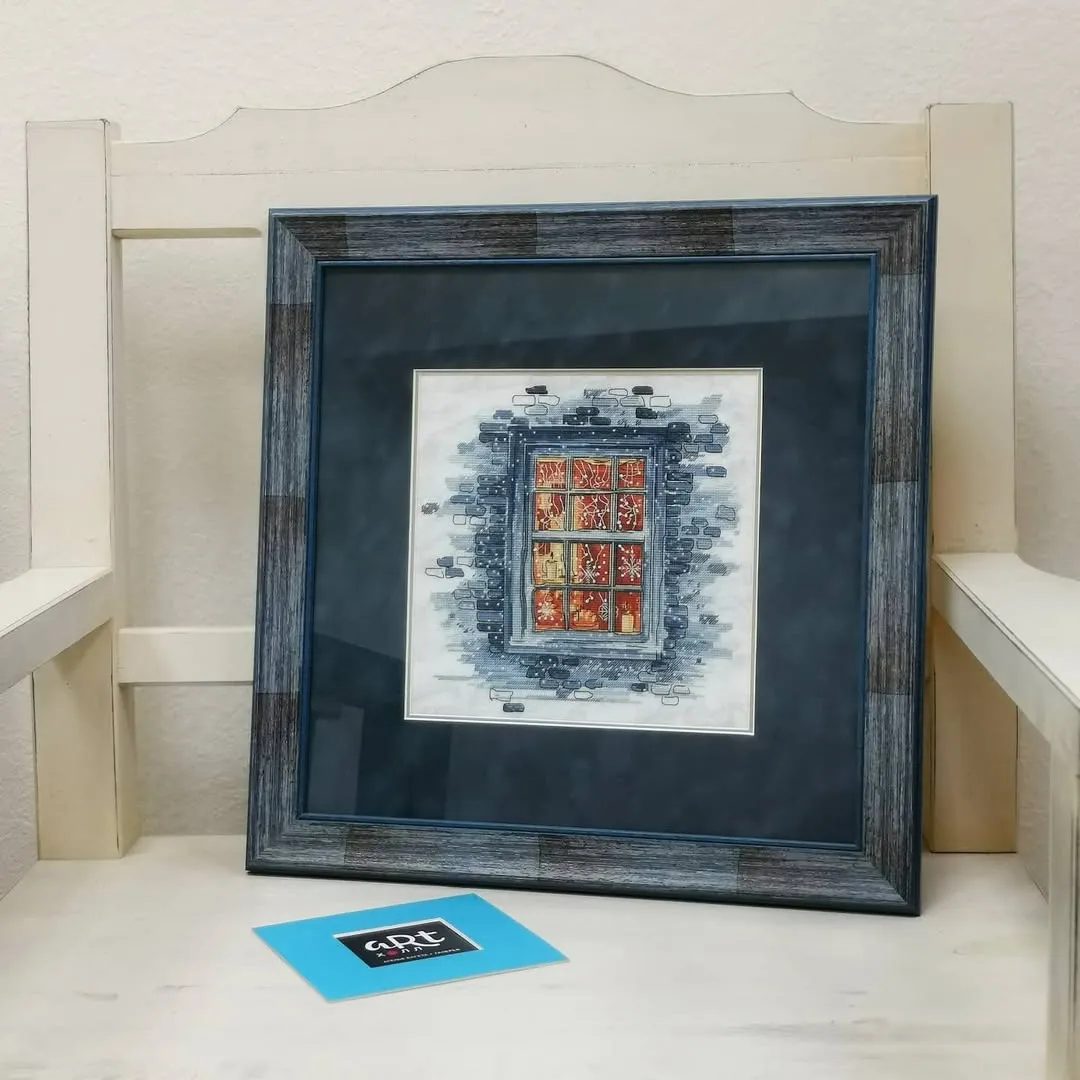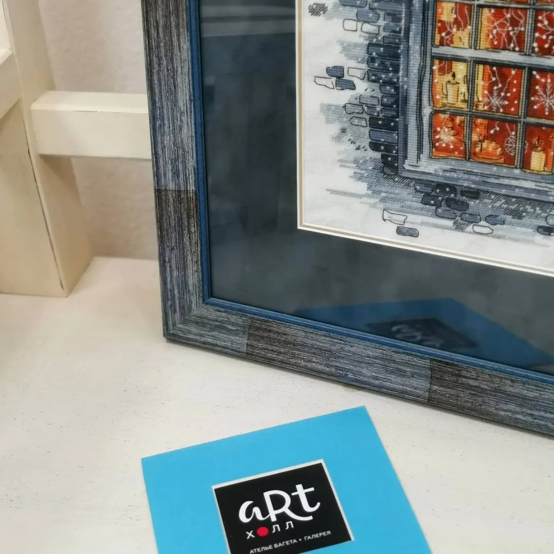 Эта работа очень понравилась моей подруге, так что было принято решение её подарить. А значит, нужно было оформить в багет. Шёл 2020 год, работать никому не разрешали, и в багетку я попала буквально шепча пароль под их дверью. Далее будут фотографии уже от мастерской – извините за некоторую их «рекламность».
