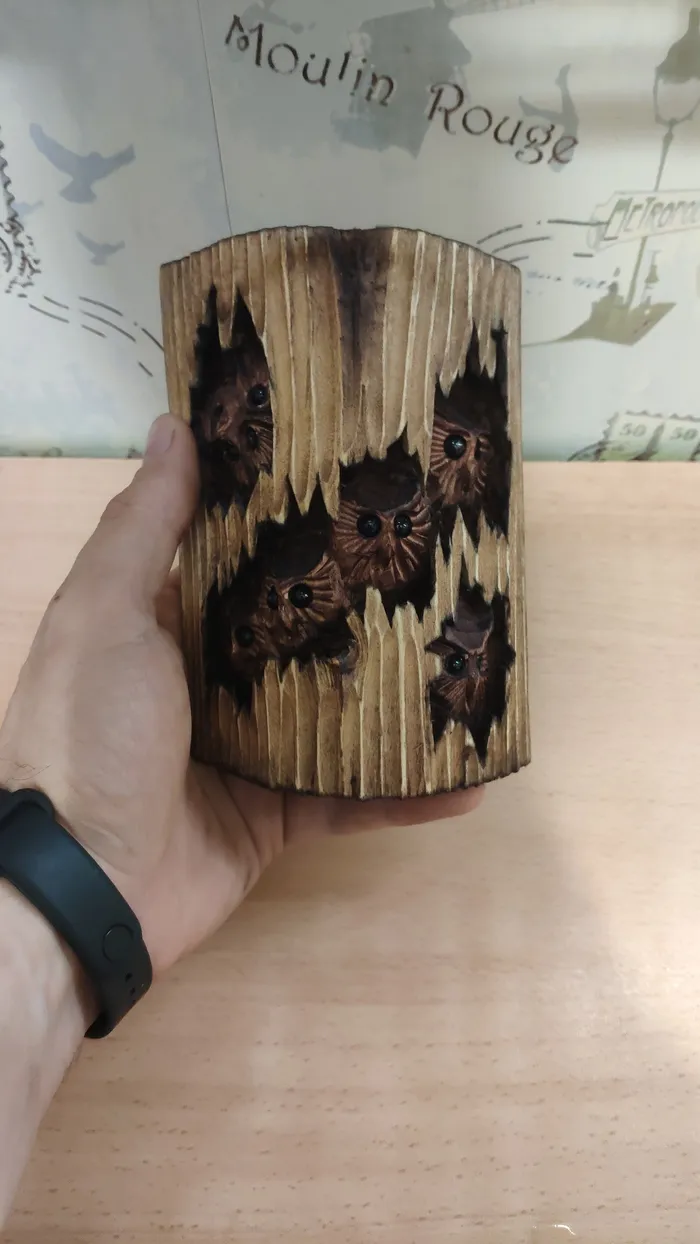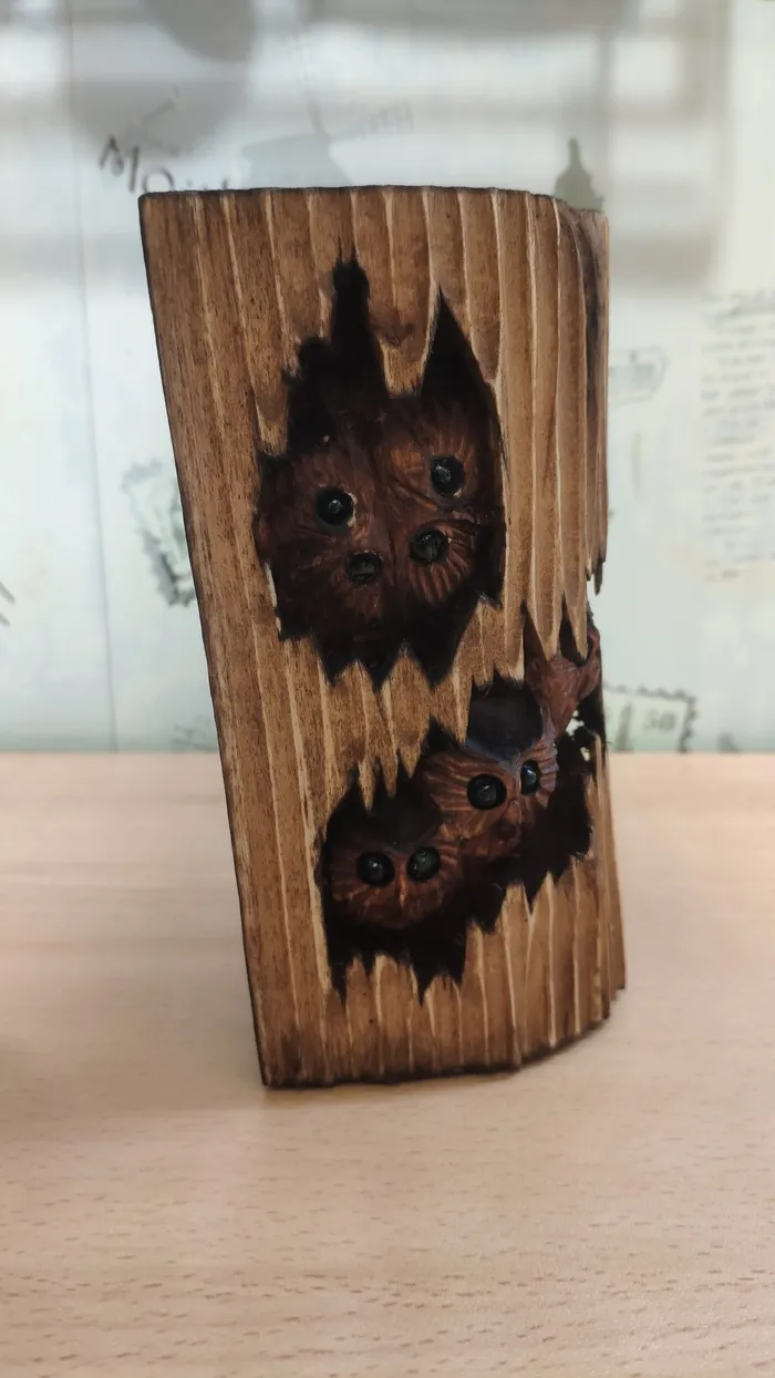 Сначала подумала, что это паучьи глазки выглядывают и хотела уже напугаться, но рассмотрела, что совы и решила умилиться)