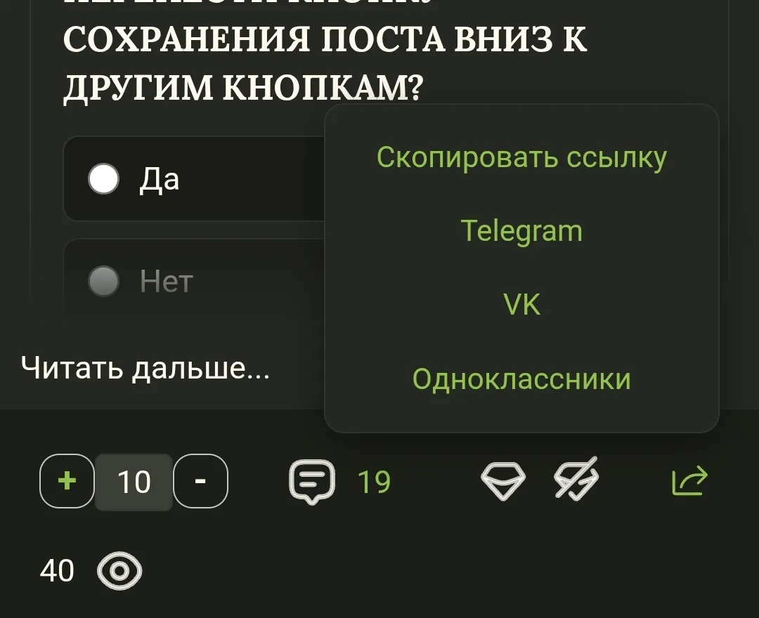 Перенести кнопку сохранения поста вниз к другим кнопкам?
