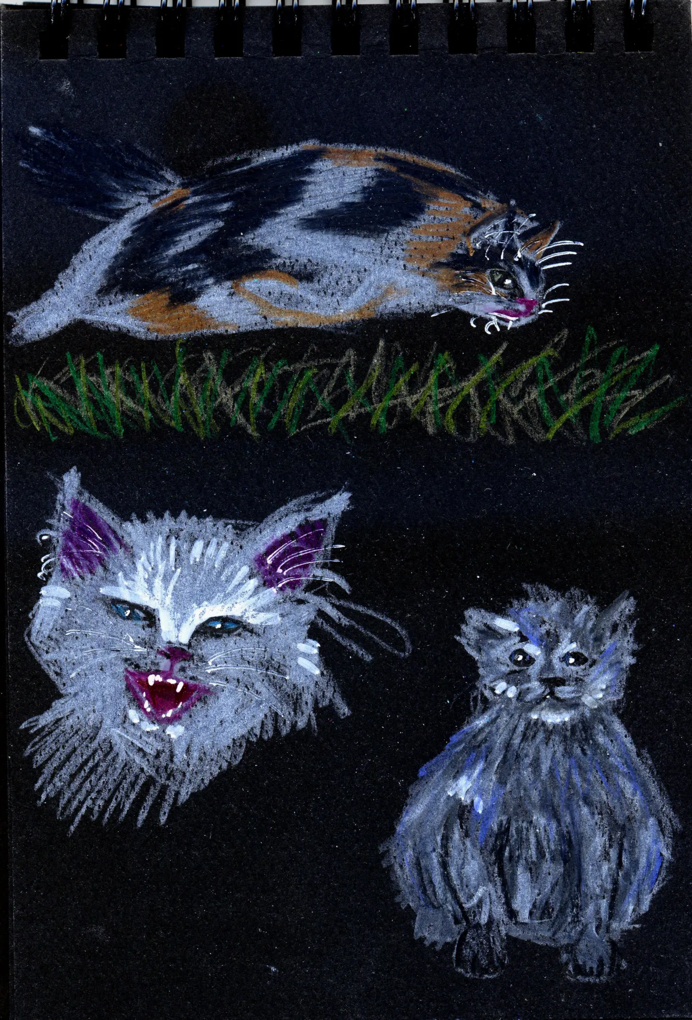 На второй рисовала котов: верхний находится в прыжке, а два нижних - просто рандомные невдупленыши-котята). Мне было весело в процессе, так что котята еще будут)