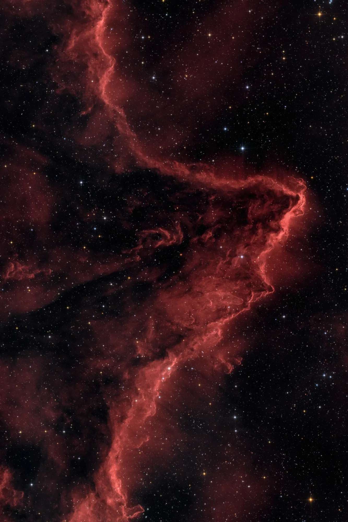 Она столь огромна, что располагается сразу в нескольких созвездиях, в основном Паруса и Корма. Внутри этой области находится много объектов, включая остаток сверхновой Vela, вспыхнувшей около 11 тысяч лет назад. На втором снимке этот же кадр, но обработанный так, чтобы убрать звёзды.