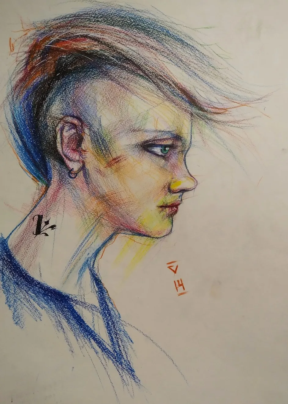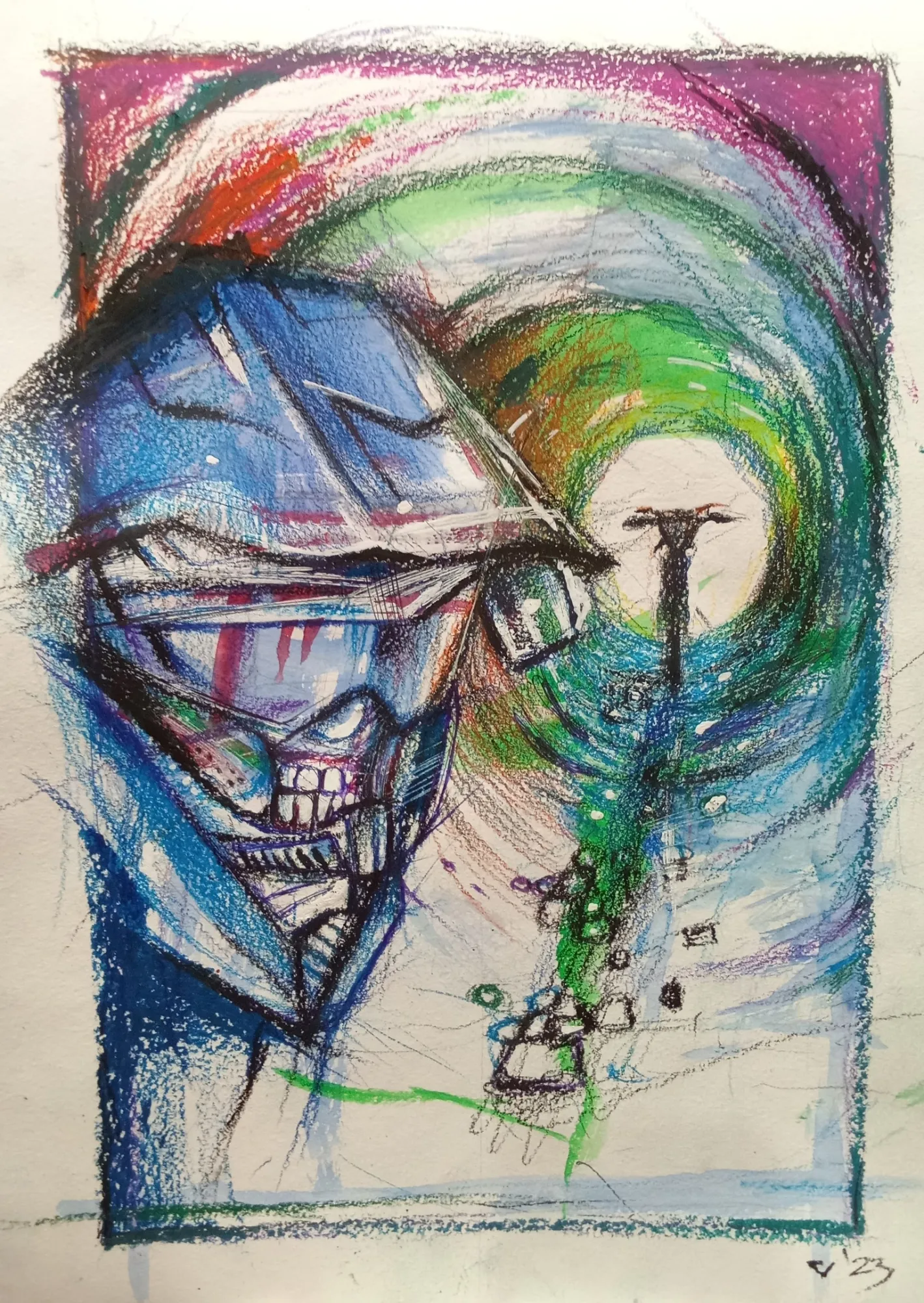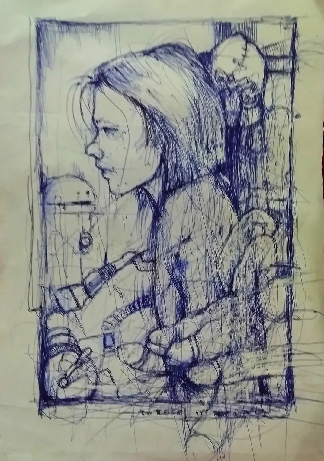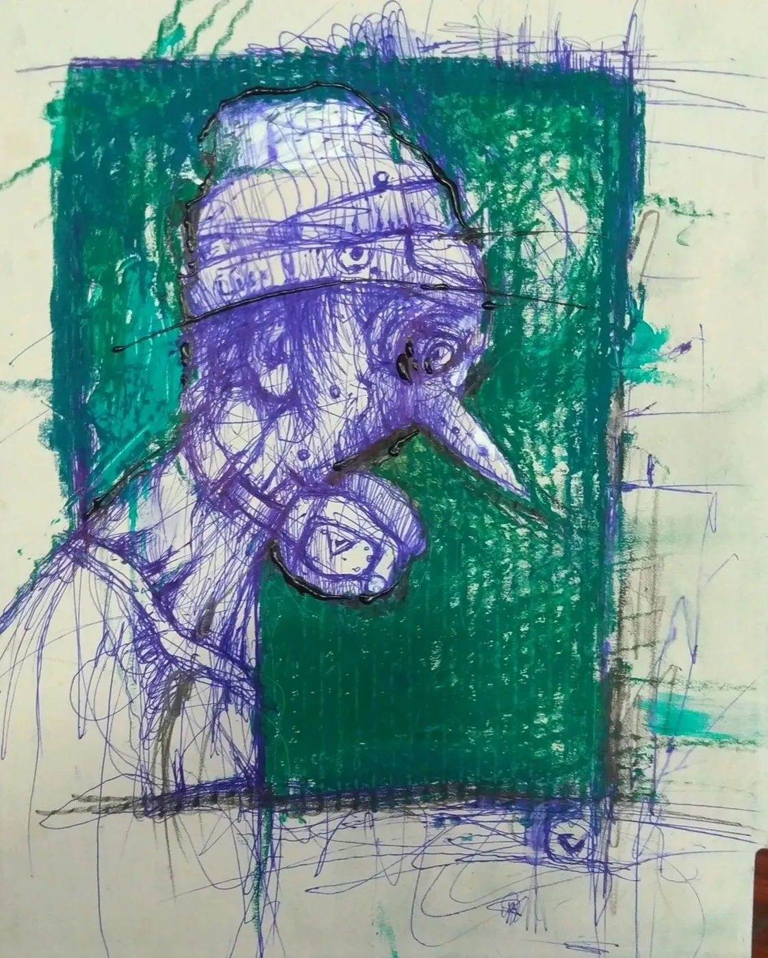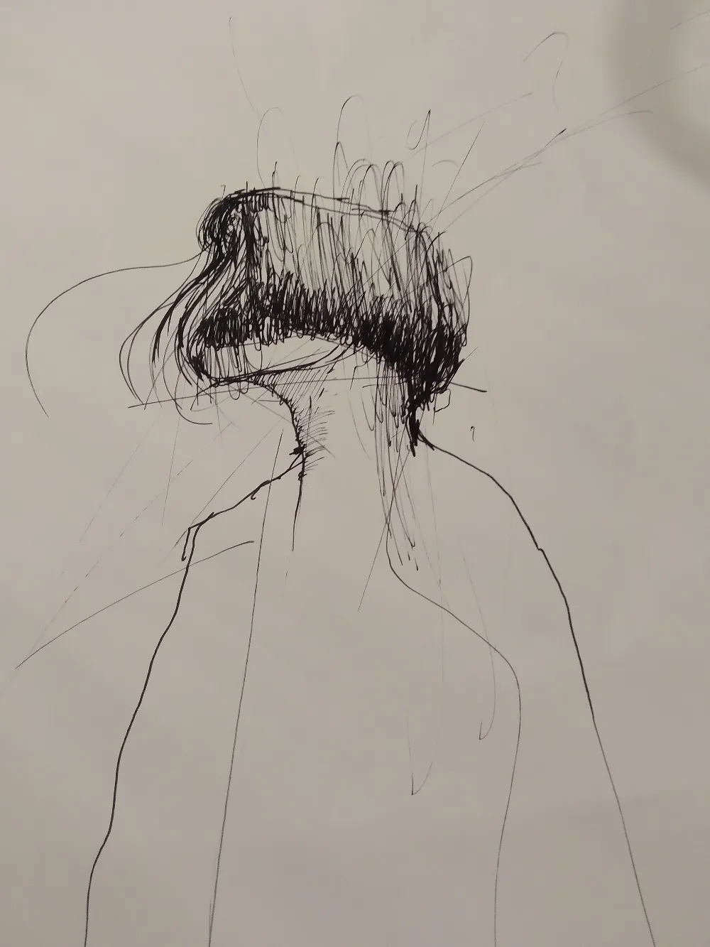 Хотя ИИ умеют делать что-то вроде эскиза из картинки, такое им пока что не под силу. Я уверен, что ни один ИИ не окажется способен повторить этот, скажем так... изысканный стиль лёгкого разобщения полушарий мозга.