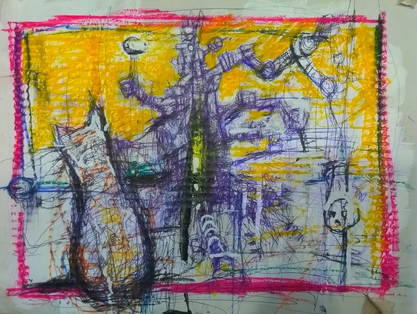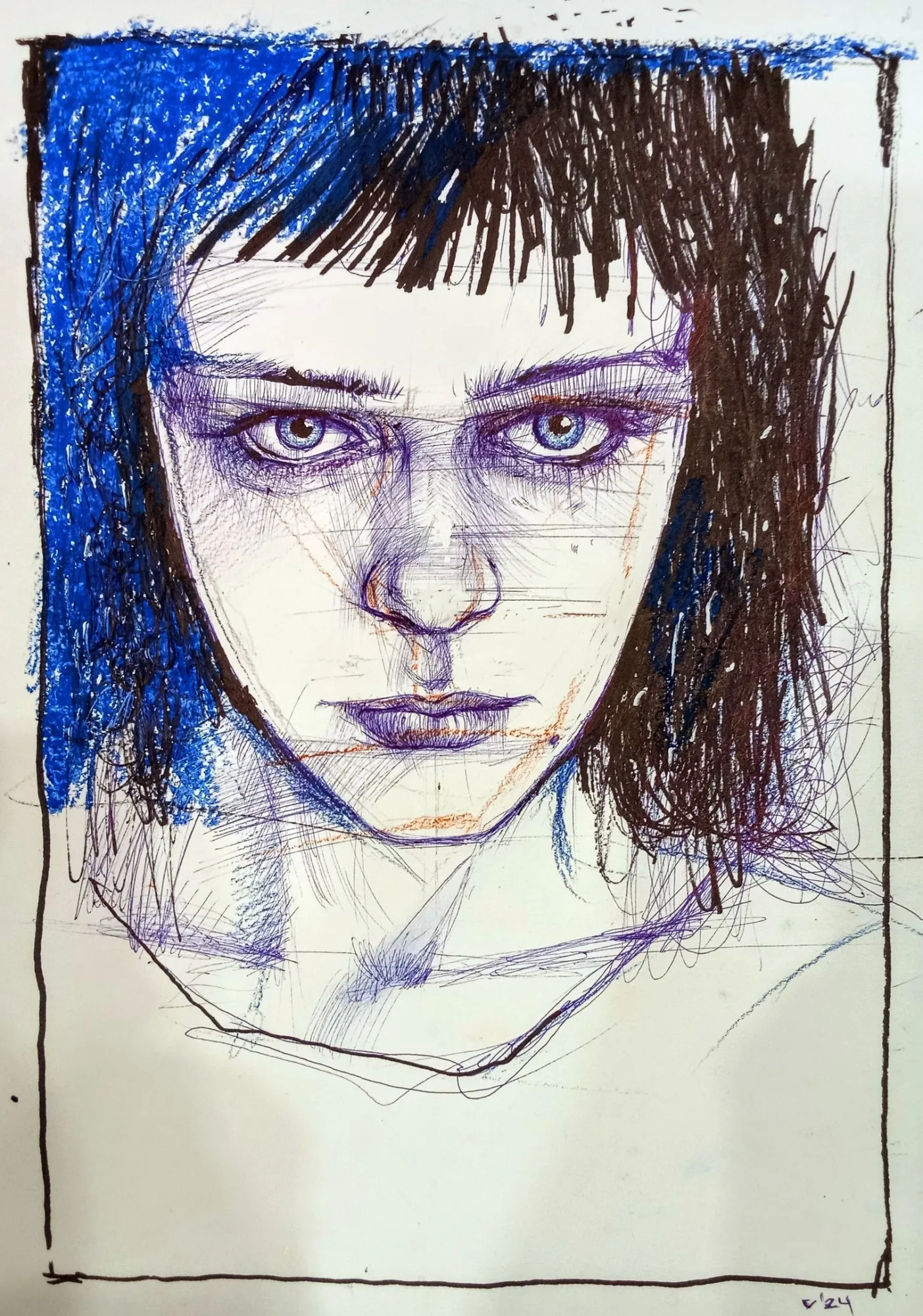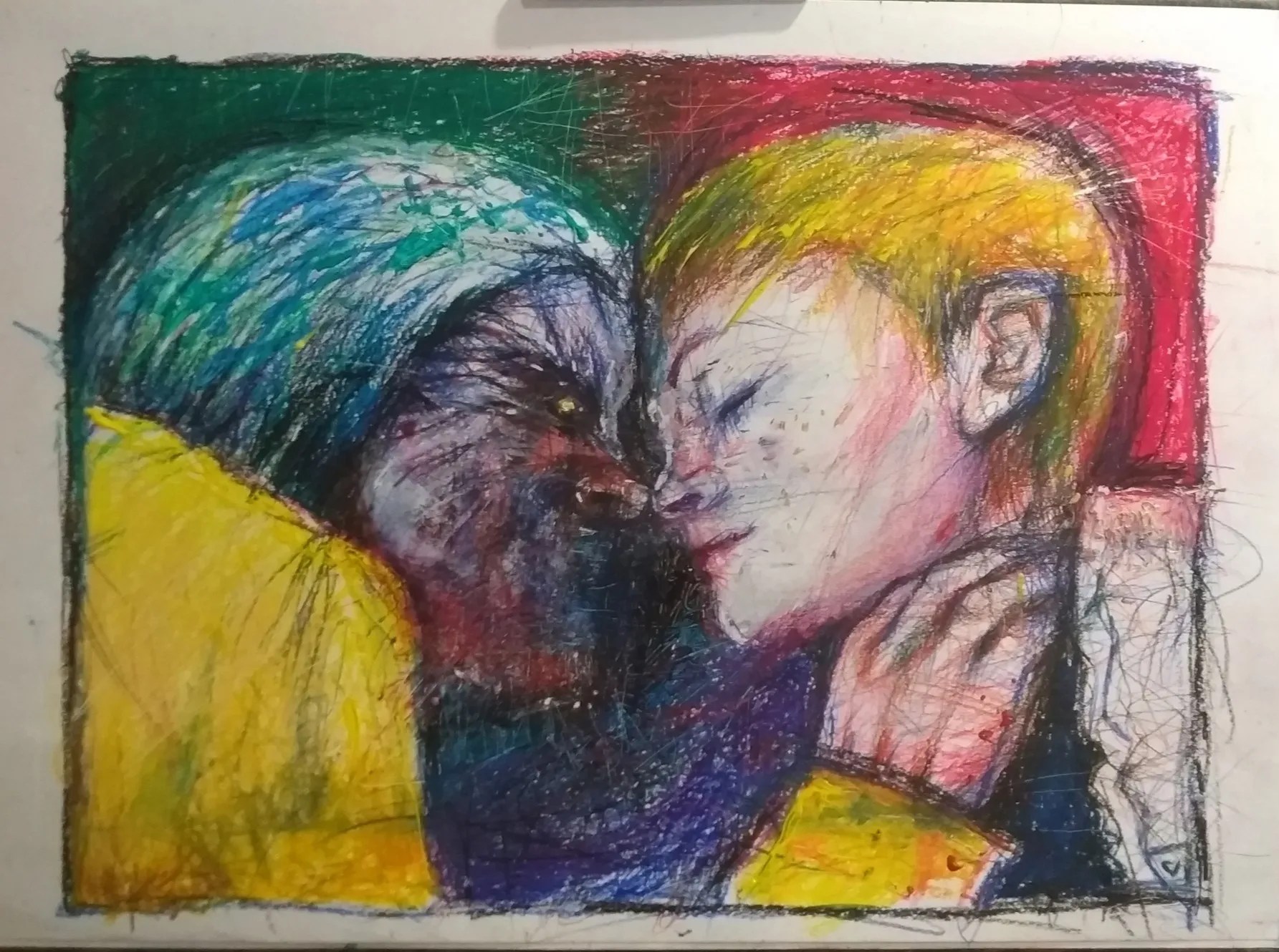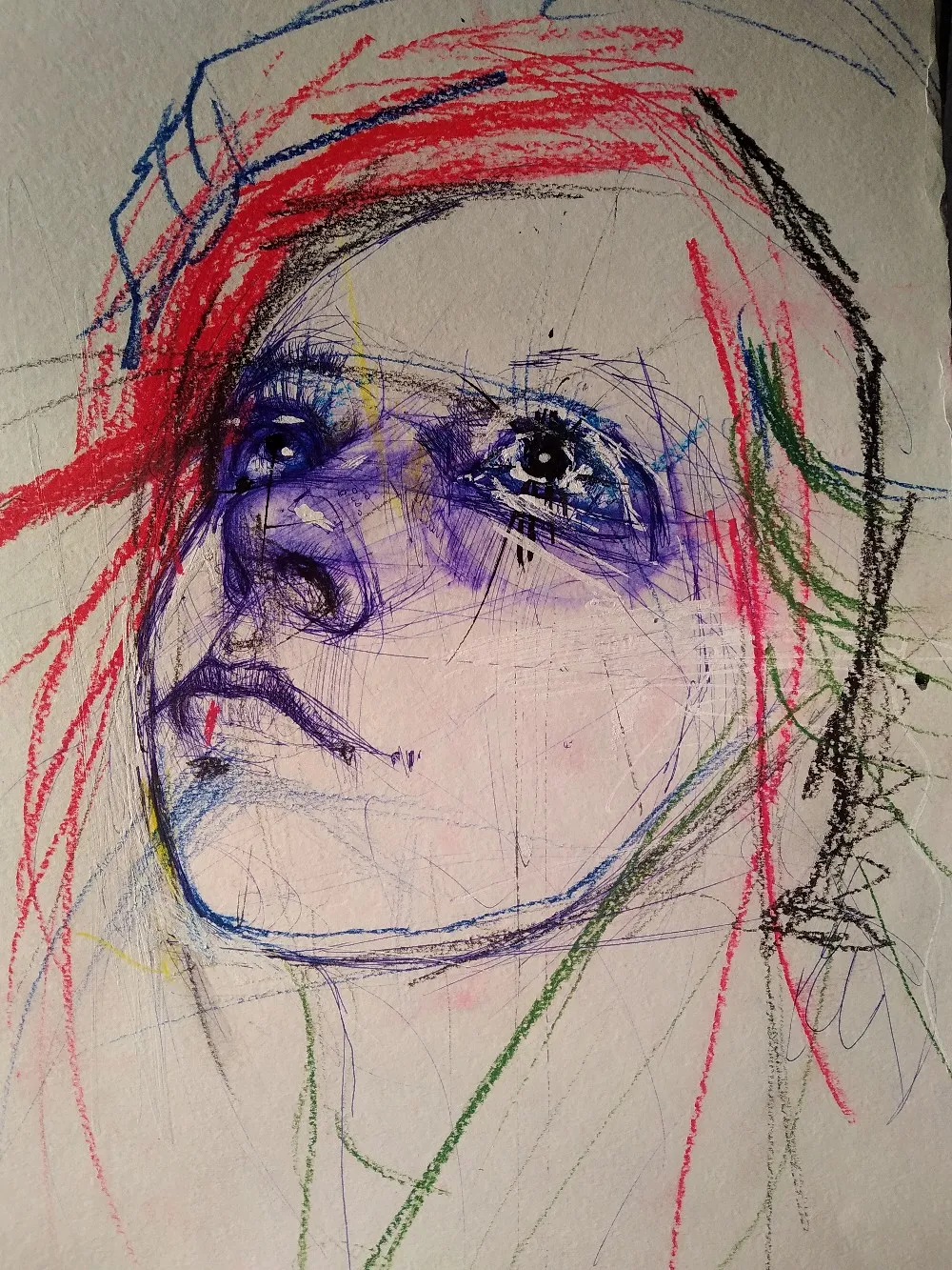 Хотя ИИ умеют делать что-то вроде эскиза из картинки, такое им пока что не под силу. Я уверен, что ни один ИИ не окажется способен повторить этот, скажем так... изысканный стиль лёгкого разобщения полушарий мозга.