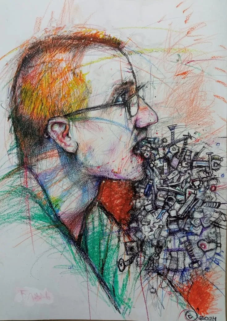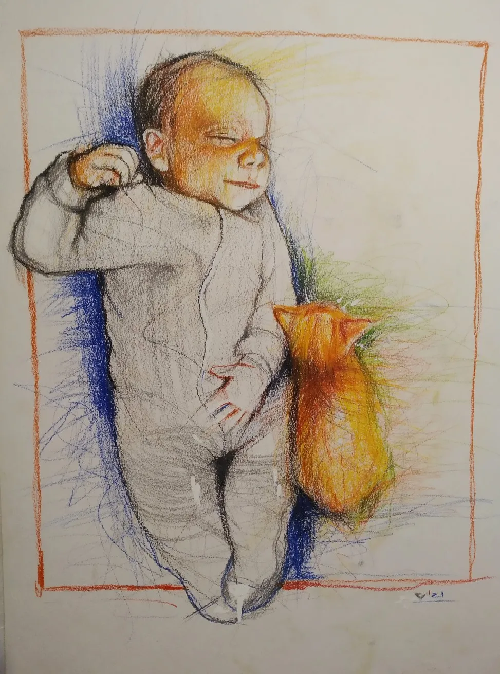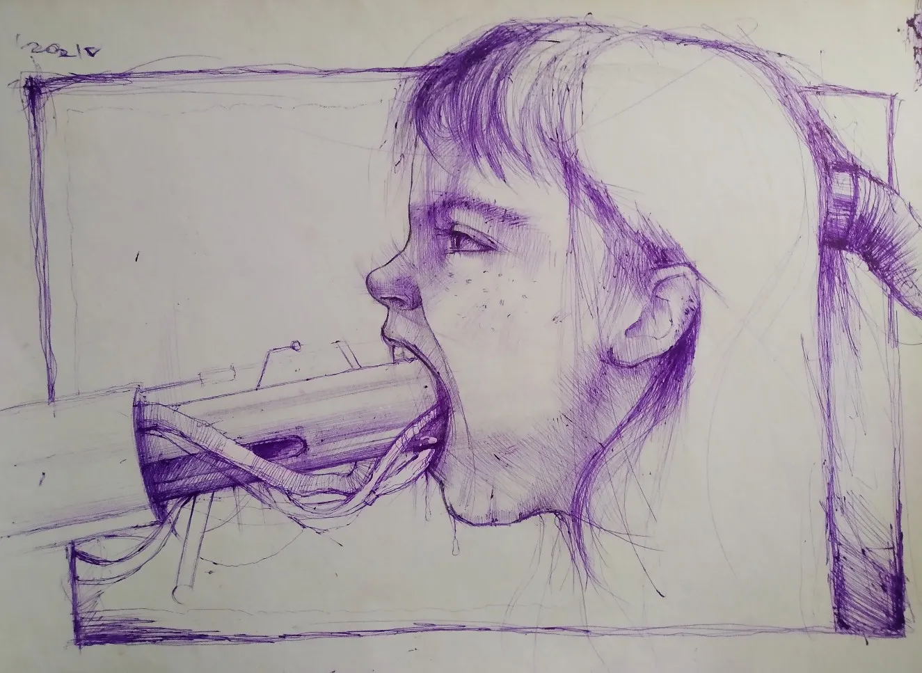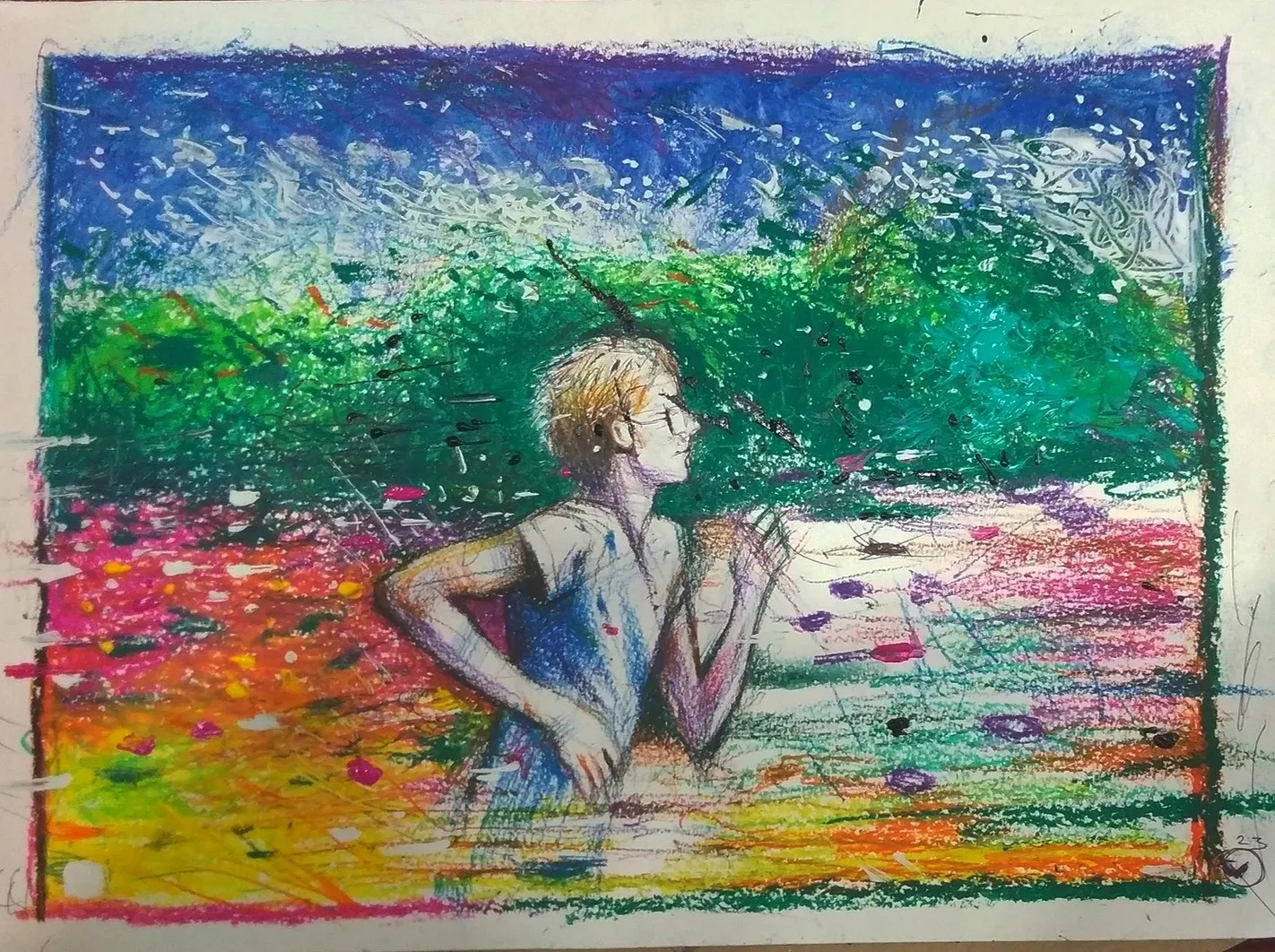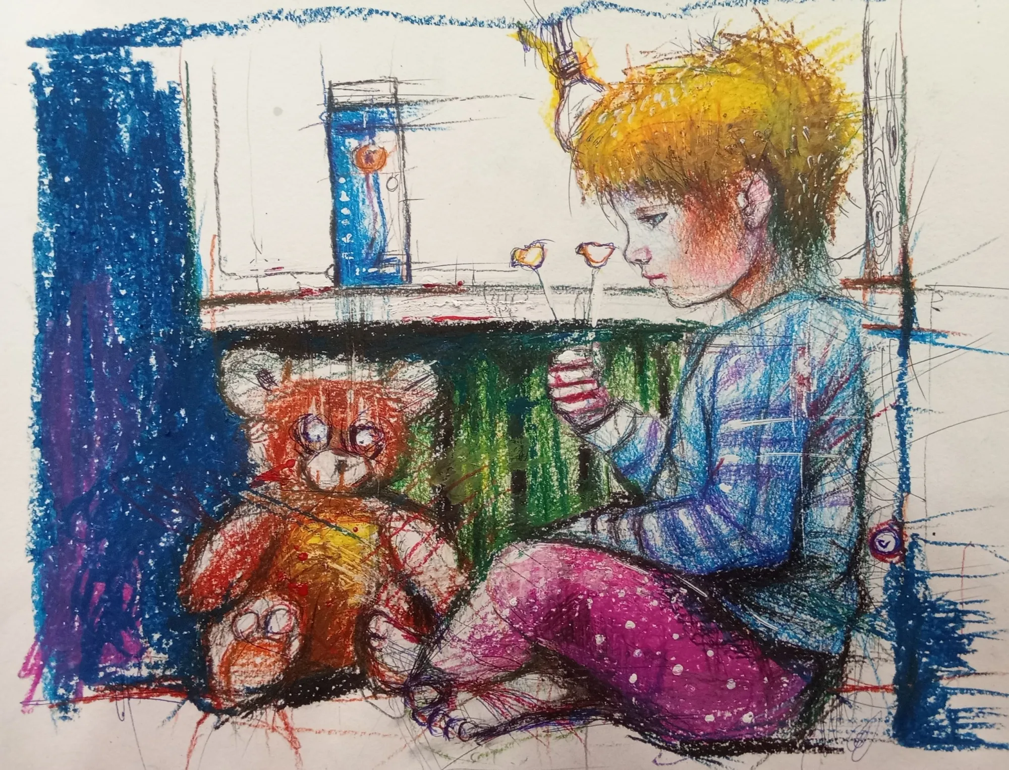 Хотя ИИ умеют делать что-то вроде эскиза из картинки, такое им пока что не под силу. Я уверен, что ни один ИИ не окажется способен повторить этот, скажем так... изысканный стиль лёгкого разобщения полушарий мозга.