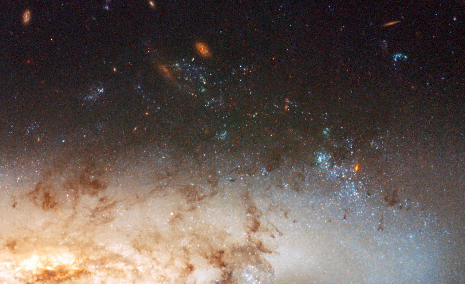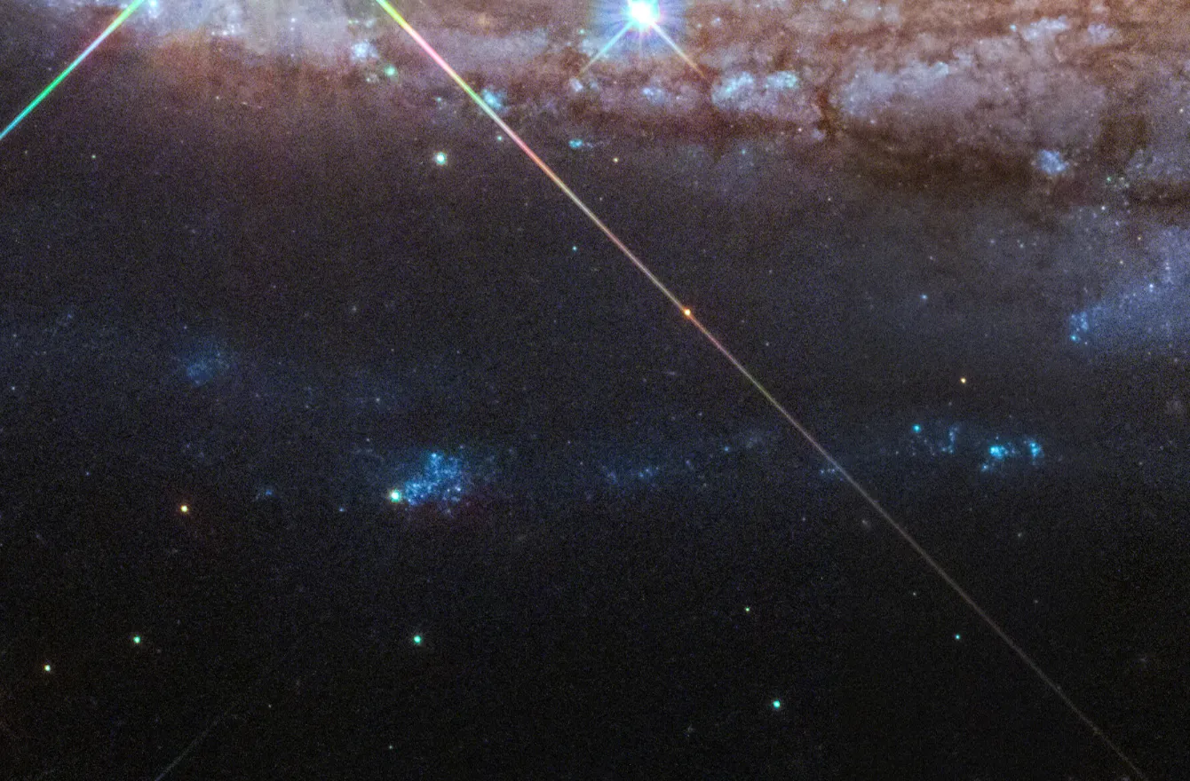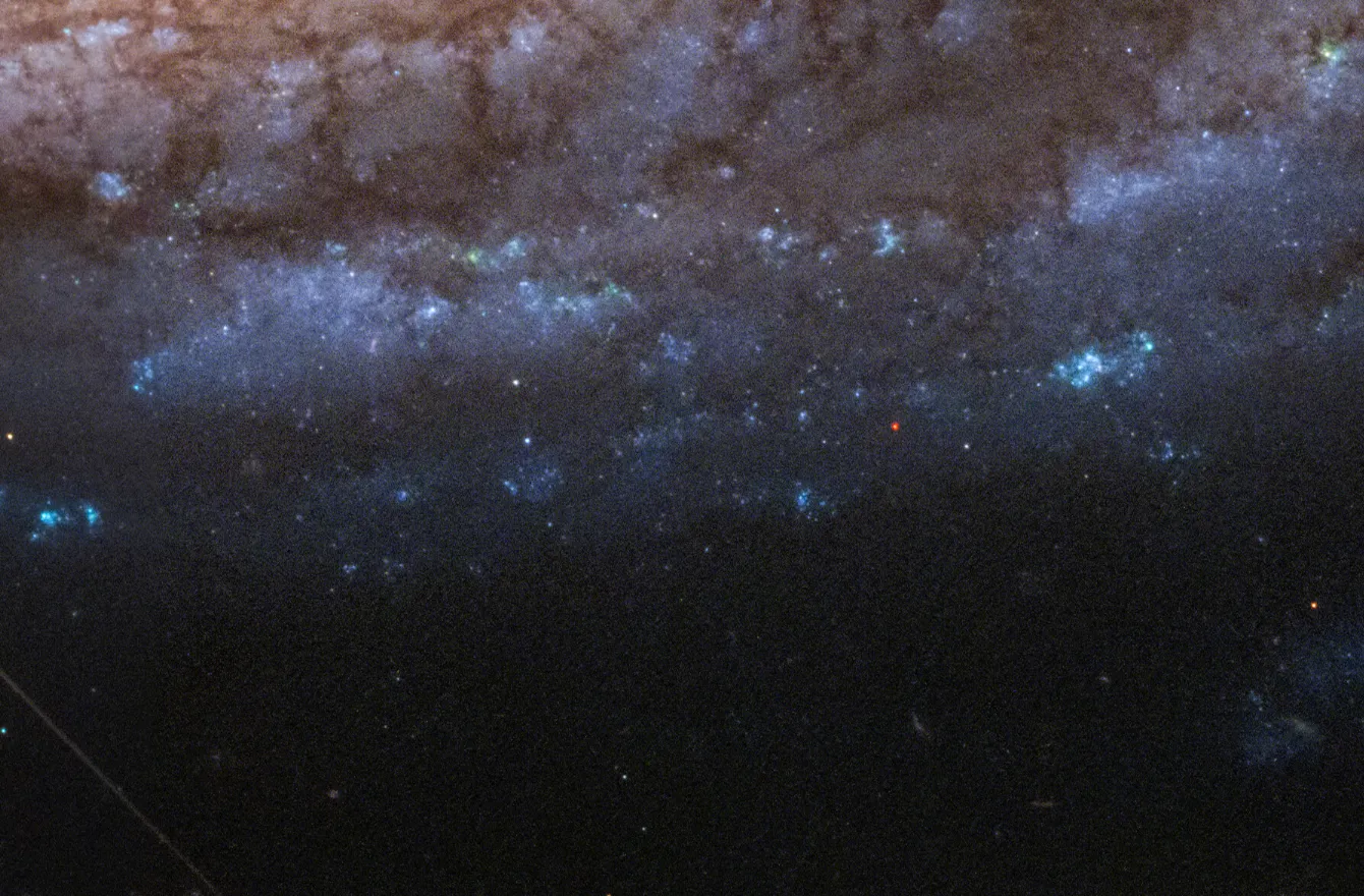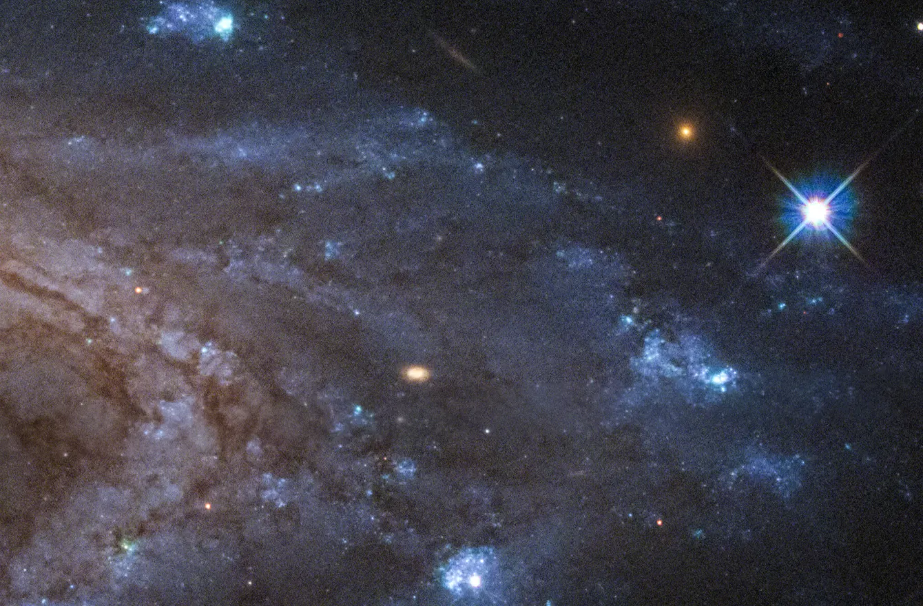 На снимке «Хаббла» видны недавно образовавшиеся звёздные скопления, возникшие в этом вырванном газе. NGC 4522 находится примерно в 60 миллионах световых лет от Земли.