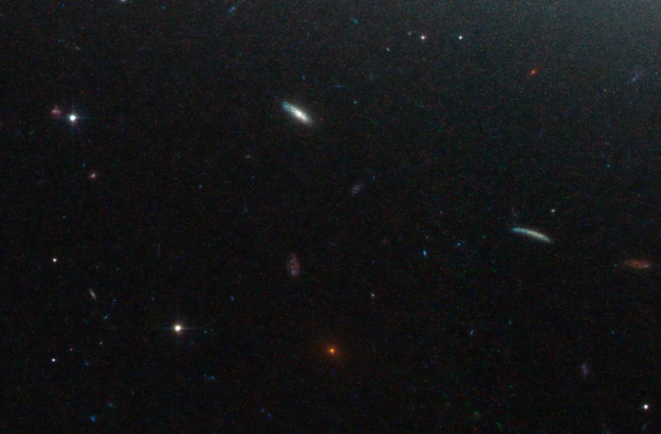 Свет от этой далёкой галактики с высоким красным смещением проходит мимо скопления, и его траектория искривляется под действием гравитации. Вместо того чтобы затруднять наблюдения, такое сильное линзирование увеличивает удалённый объект, улучшая разрешение и глубину изображения. В некоторых случаях оно даже создаёт несколько изображений одного и того же объекта, поскольку свет огибает скопление по разным траекториям.