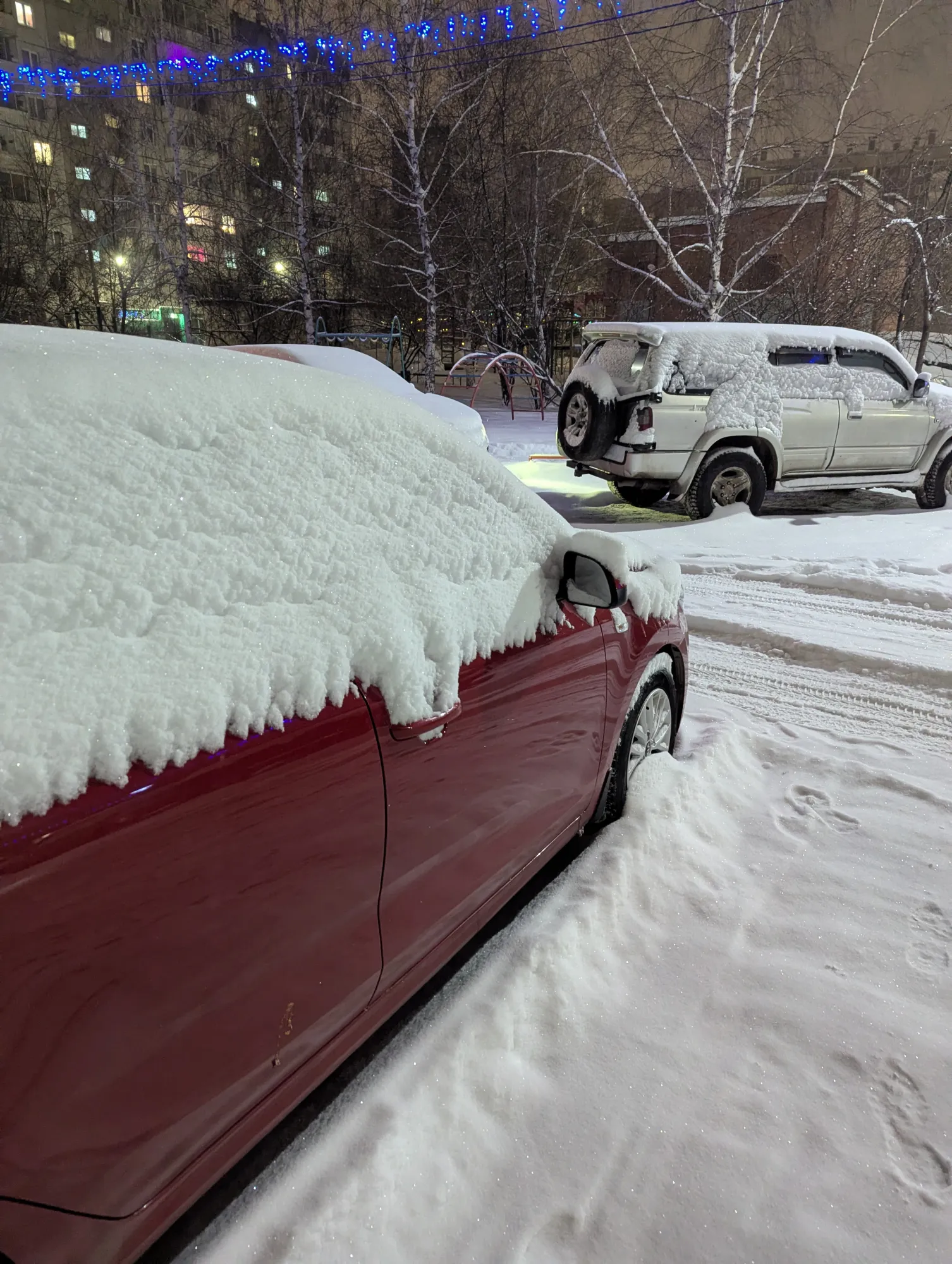 У нас тоже снежок выпал. Он и так был, конечно, но сейчас всю ночь шёл и до сих пор сыпет. На работу добиралась больше двух часов.