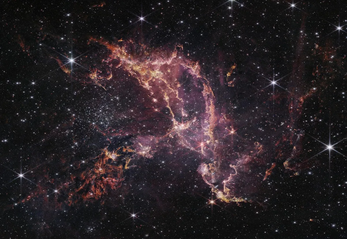 NGC 346 — одна из самых активных "звездных колыбелей" в наших окрестностях: скопление молодых звезд подсвечивает и выдувает окружающий газ, формируя специфические нити, дуги и полости.