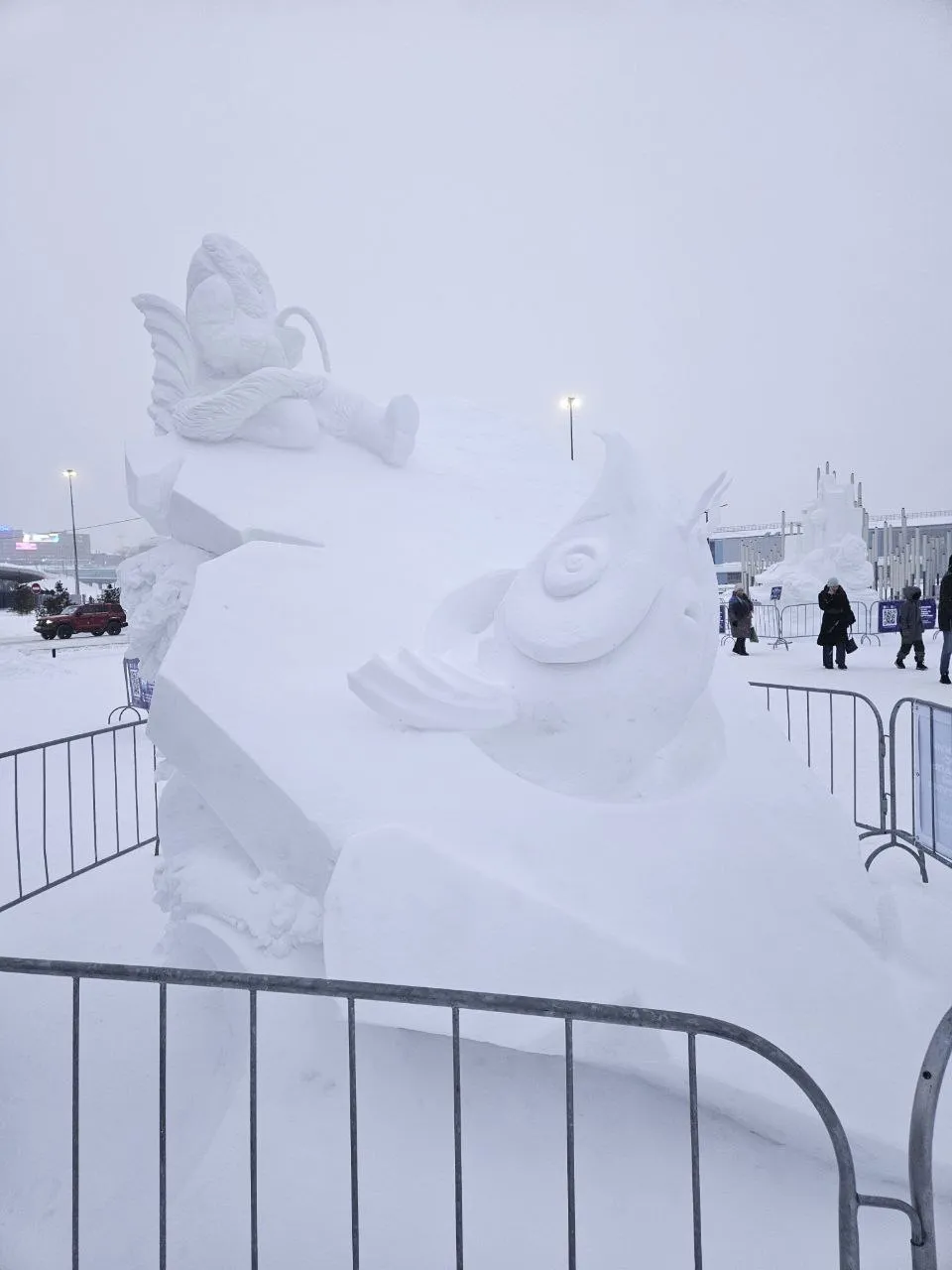 Сходил я тут на фигуры снежные посмотреть да вам показать, да Дед Мороз не дремал, минус 23 наморозил на улице, чтобы ушки да носы отваливались ) Заодно и народ отвалился в места более теплые )