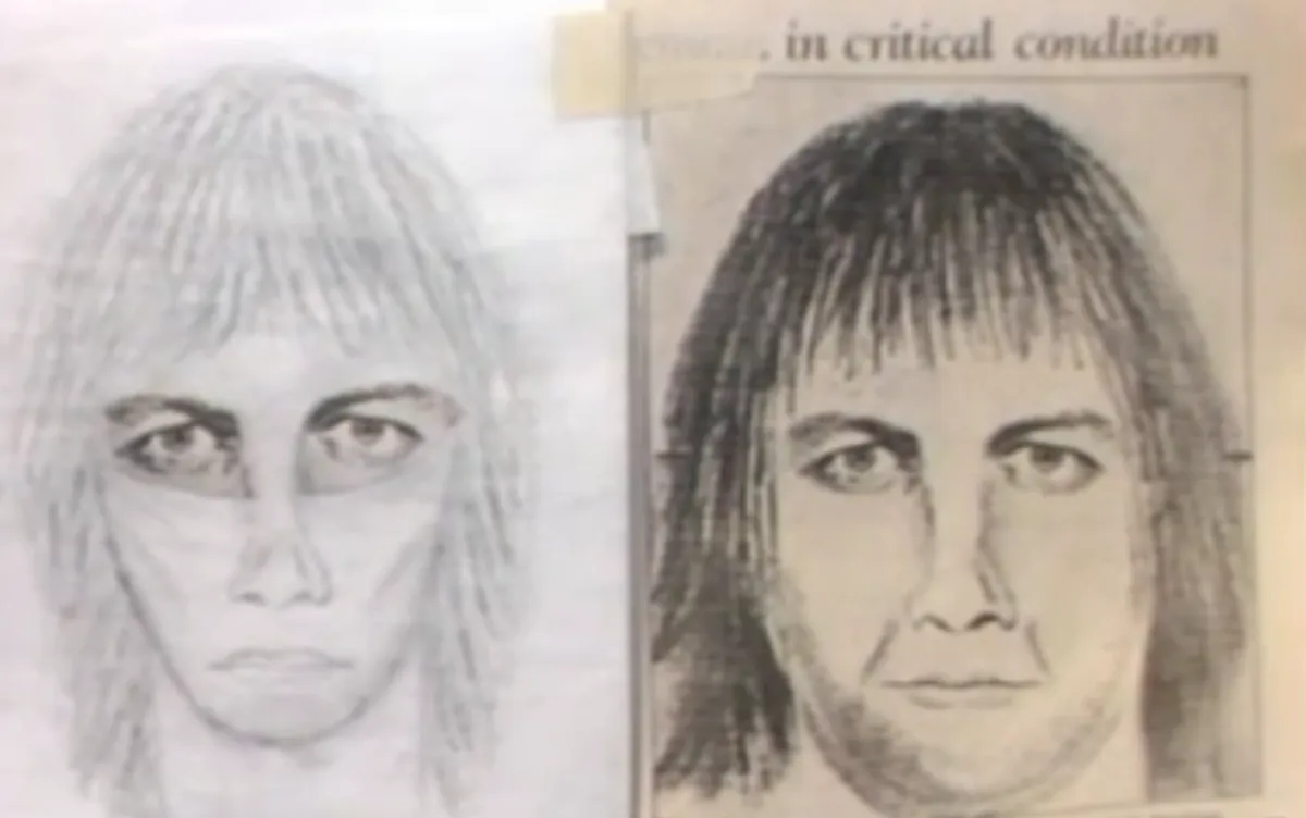 Был составлен фоторобот подозреваемого - мужчина с густыми волосами до плеч. Дайан никогда его ранее не видела. Полиция направилась на место преступления. Сержант округа Лейн Робин Резерфорд попросил Дайан на следующий день поехать туда вместе с ним.