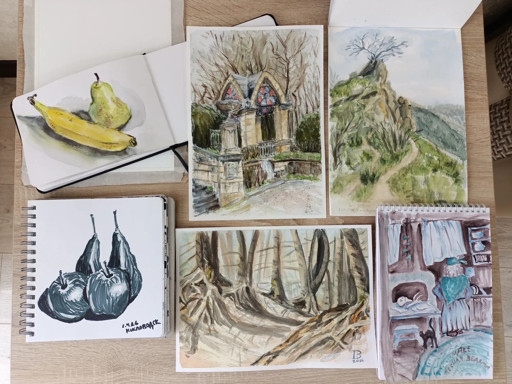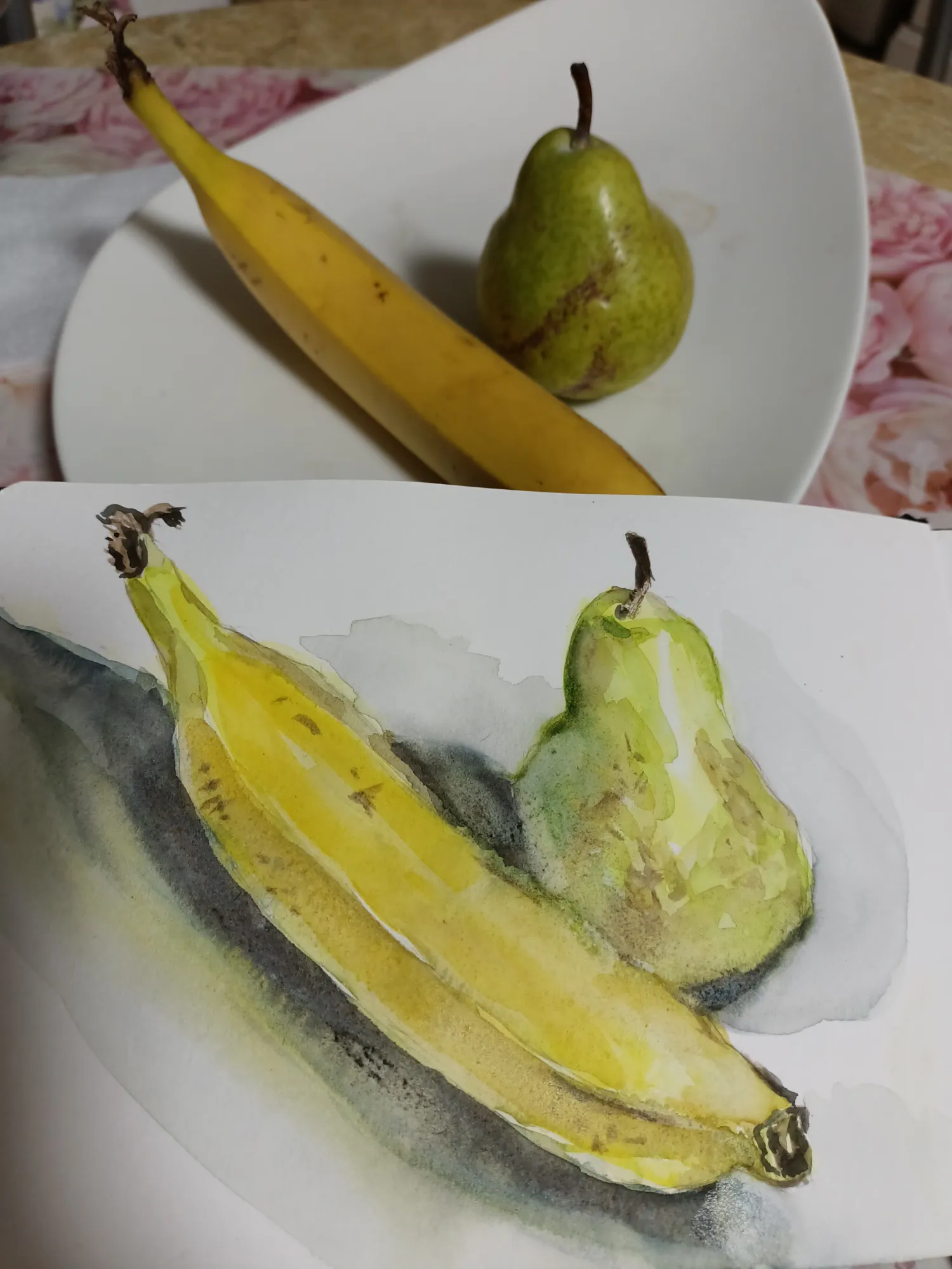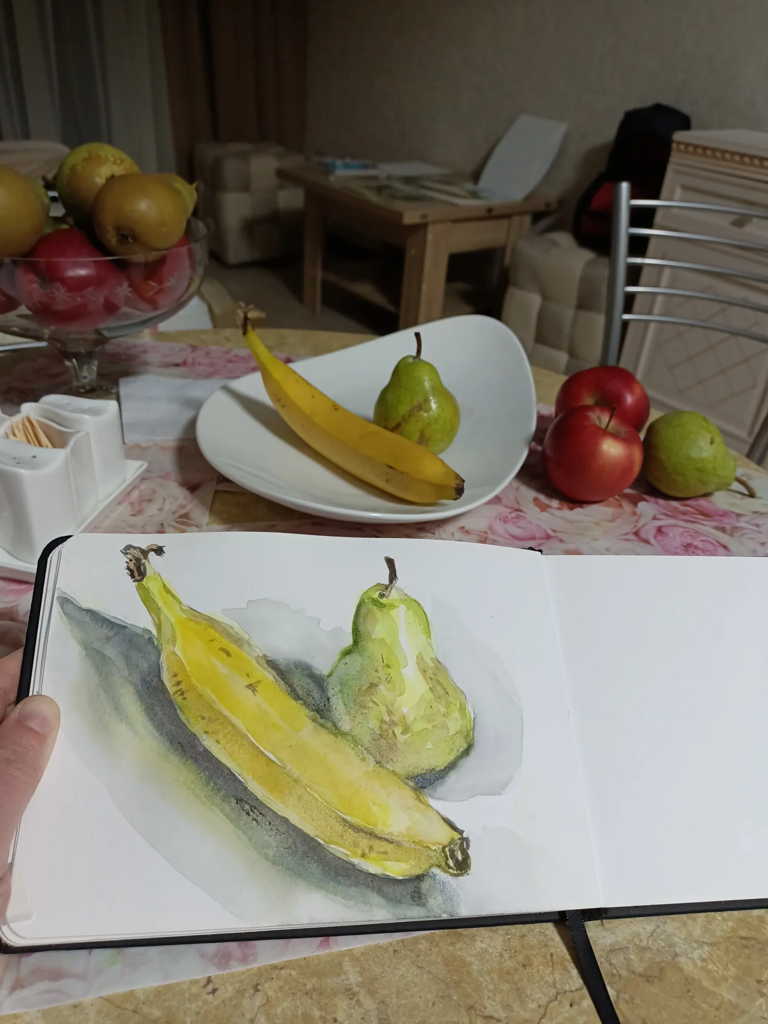 Сделала всё-таки набросок. Достала краски, не забыла же на сей раз. Начала самую интересную часть, акварельную.