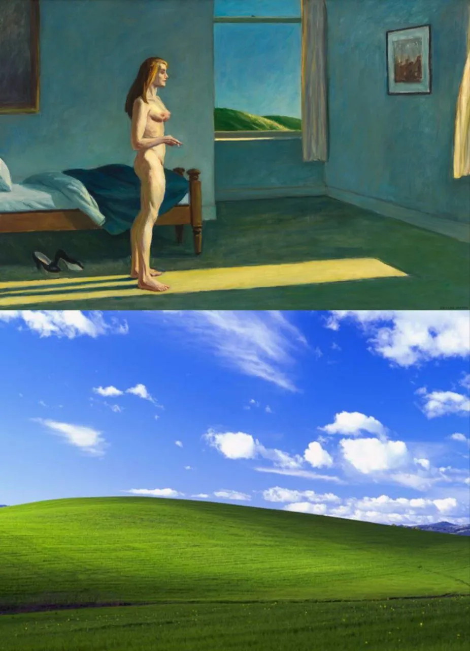 В прошлом уже году, в декабре, когда сидел в Photoshop, размышлял, что же мне напоминает пейзаж за окном на оригинальной картине Эдварда Хоппера. Потом дошло: это уже на каком-то подсознательном уровне после многолетнего использования одной из лучших (по моему мнению, конечно) операционных систем от MS – Windows XP.