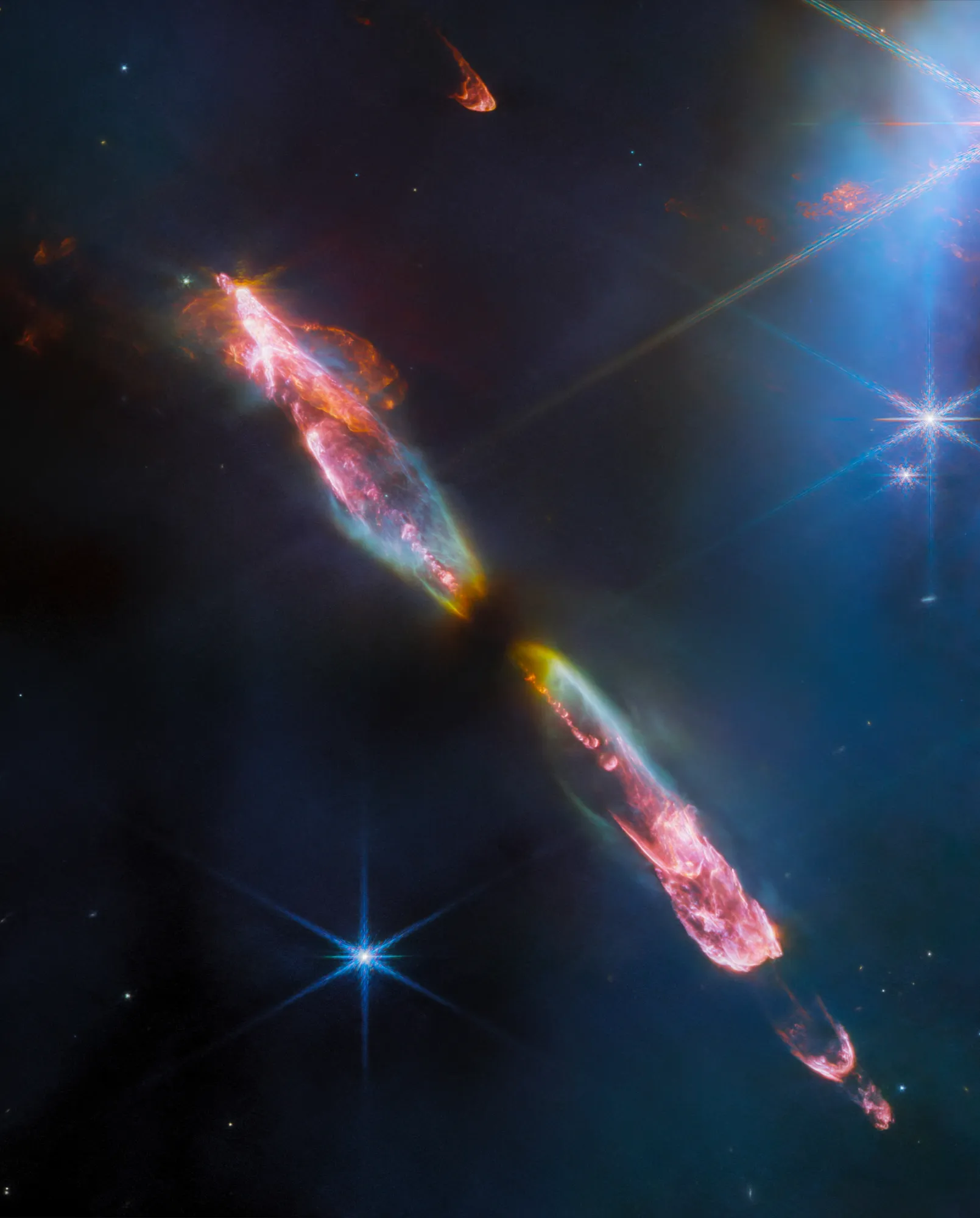 Объекты Хербига-Аро являются временным явлением, возникающим на ранней стадии жизни звезд. Через несколько десятков тысяч лет они полностью рассеются в межзвездном пространстве. Если бы 5 миллиардов лет назад у кого-то в Млечном пути был свой аналог James Webb и он бы сфотографировал новорожденное Солнце, то вполне возможно, запечатлел бы схожую картину.