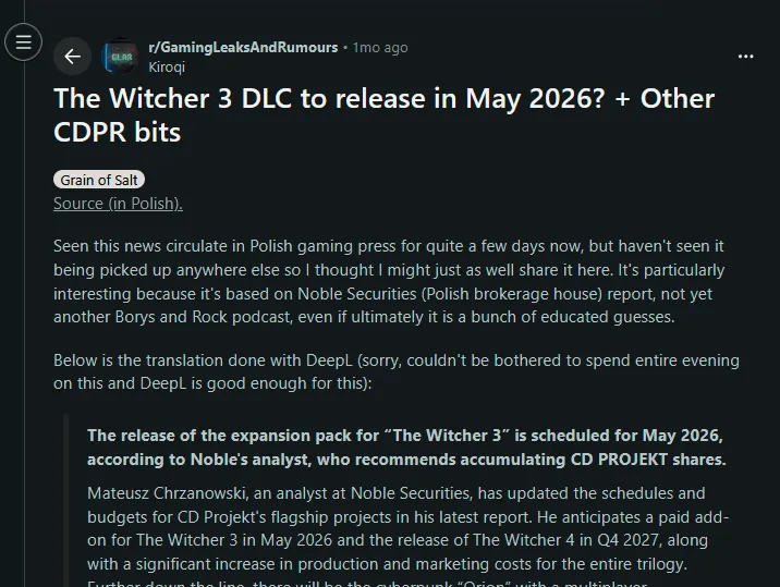 Немного разбавлю поток жести. Тут наткнулся на удивительно приятную новость. Оказывается, в сети уже месяц обсуждают выход еще одного DLC для «Ведьмака 3».