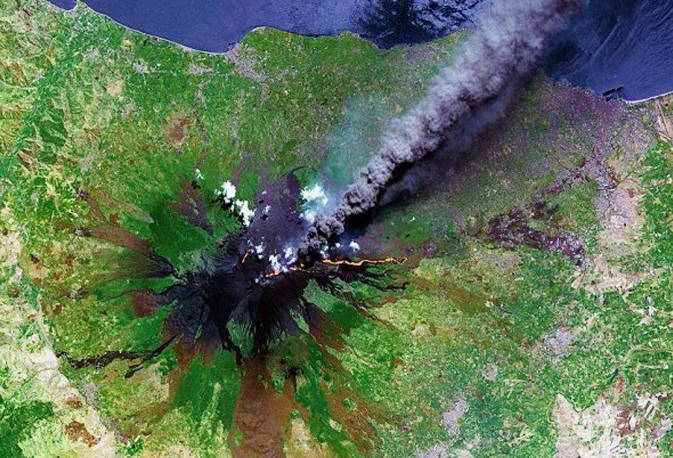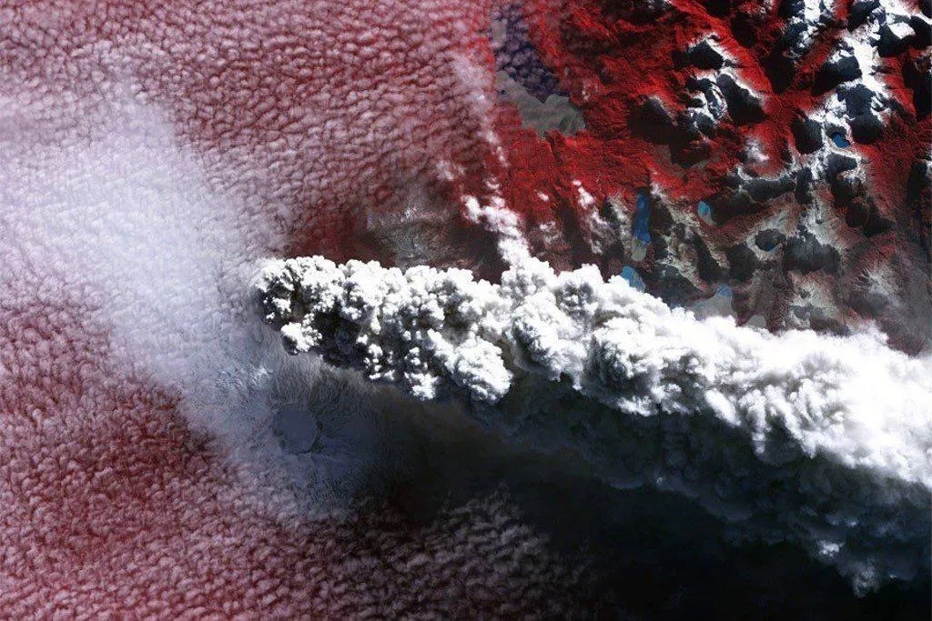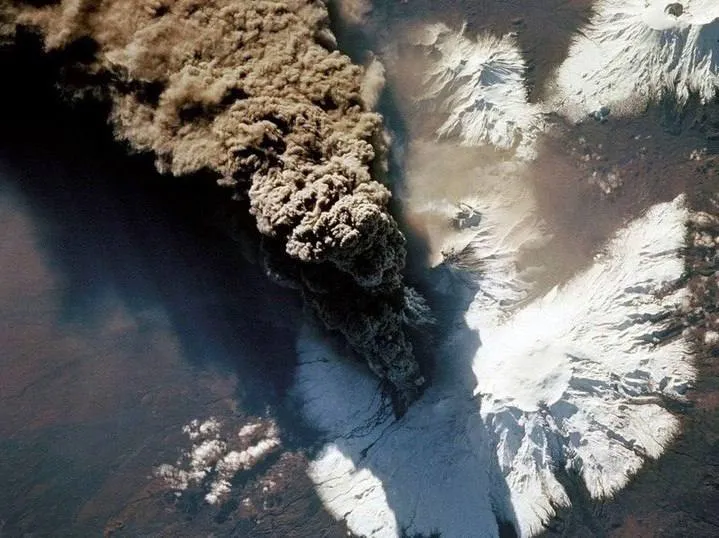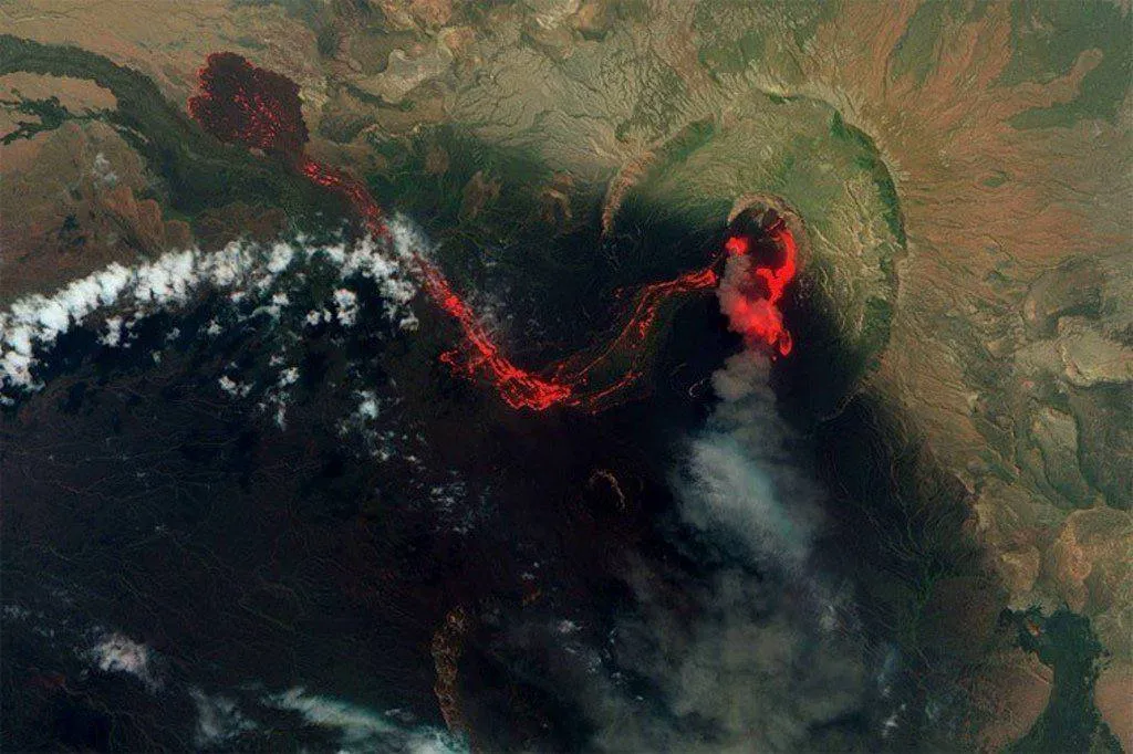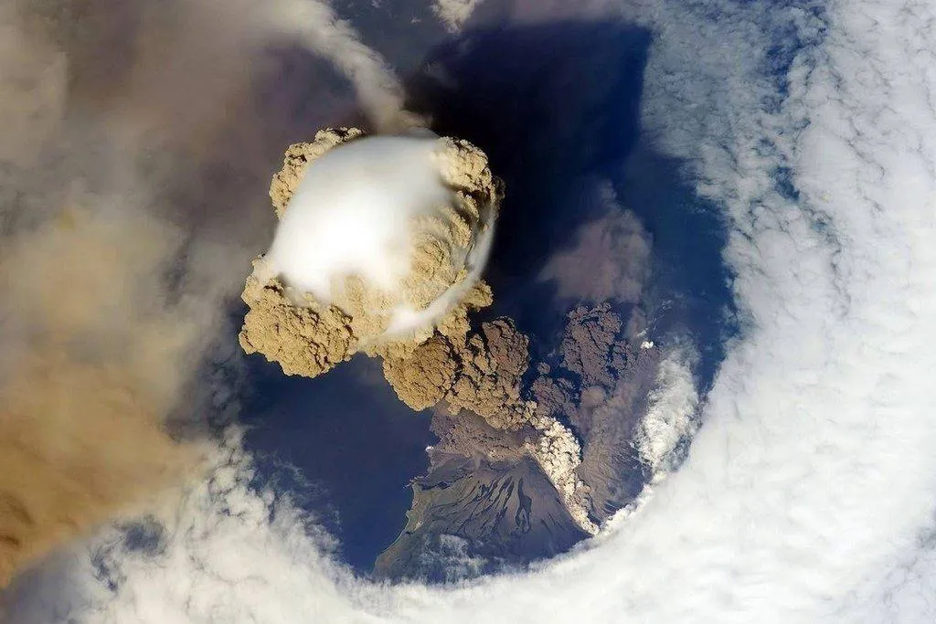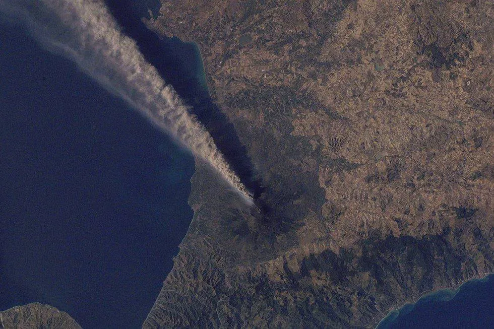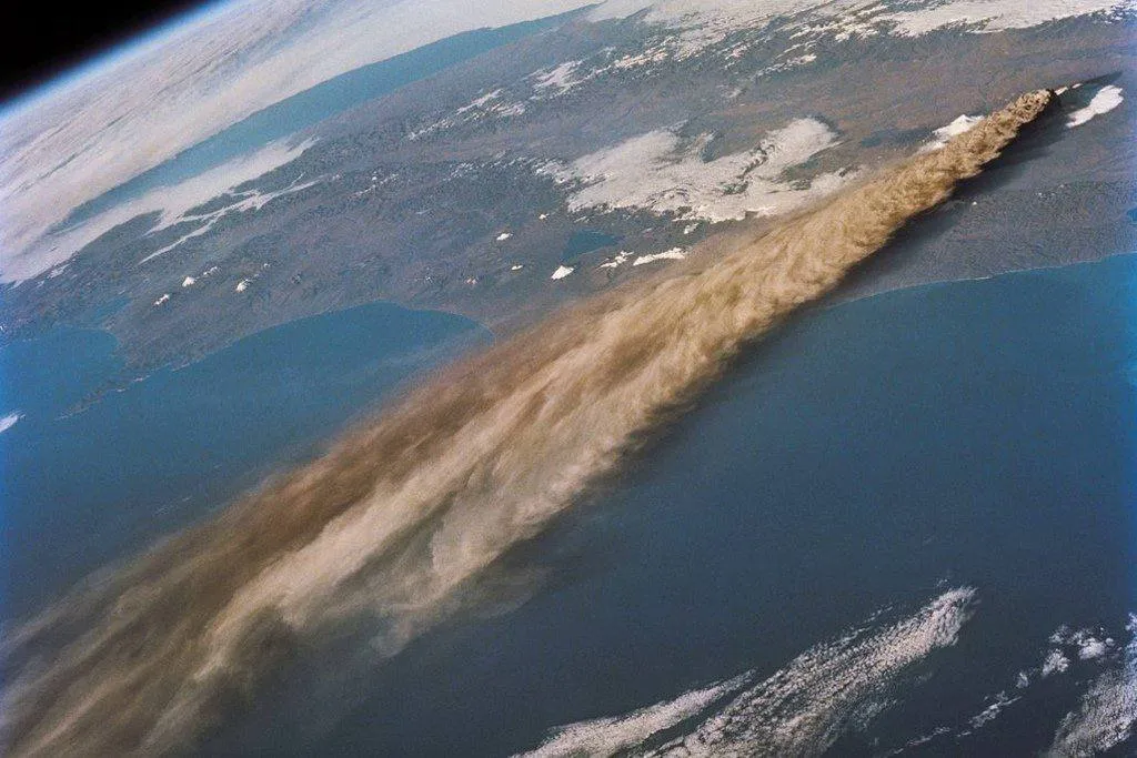 Вертикальные полосы в нижней половине снимка — это звёзды, вытянувшиеся в треки из-за длительной съёмки. Самая толстая вертикальная белая линия — след от Луны.