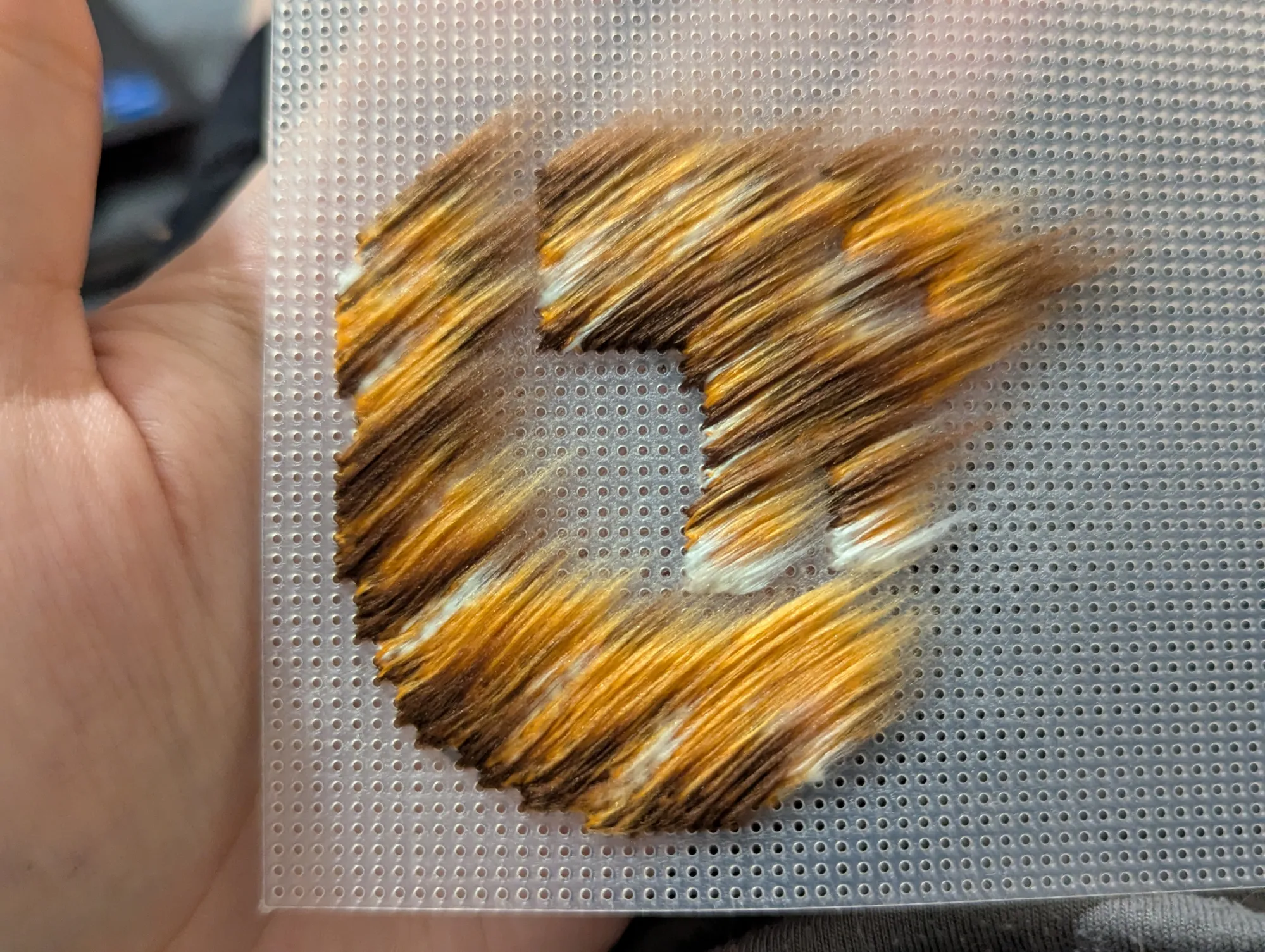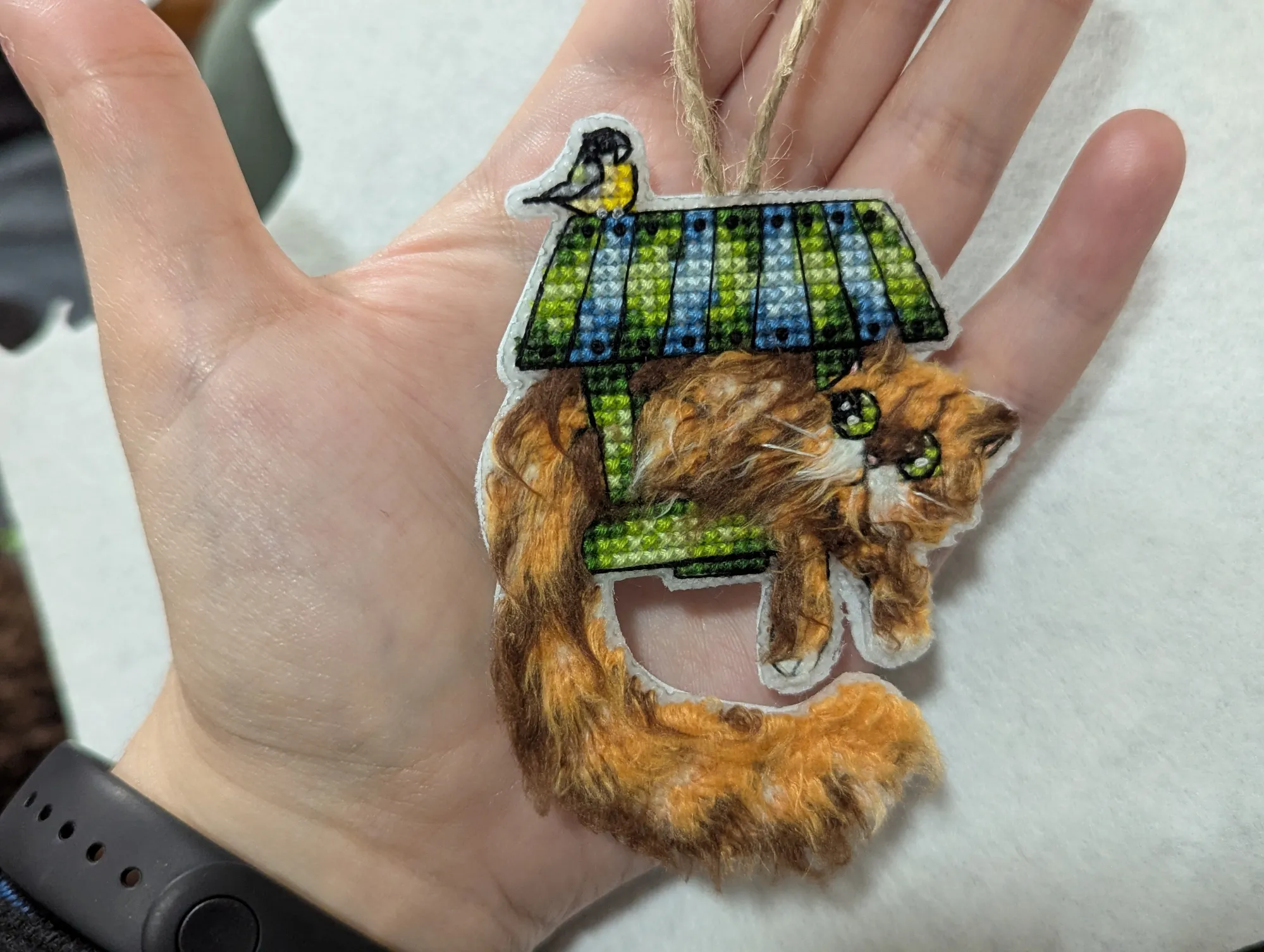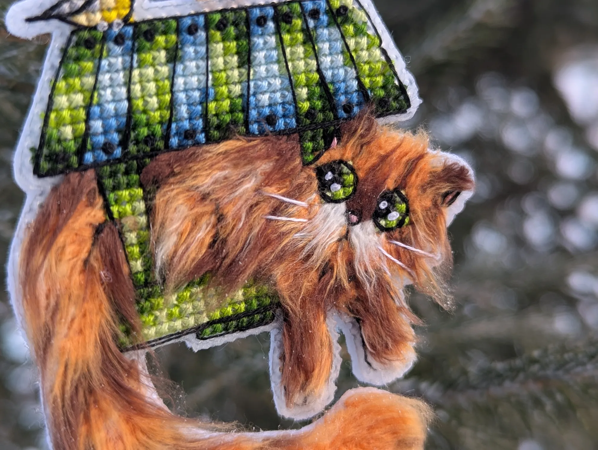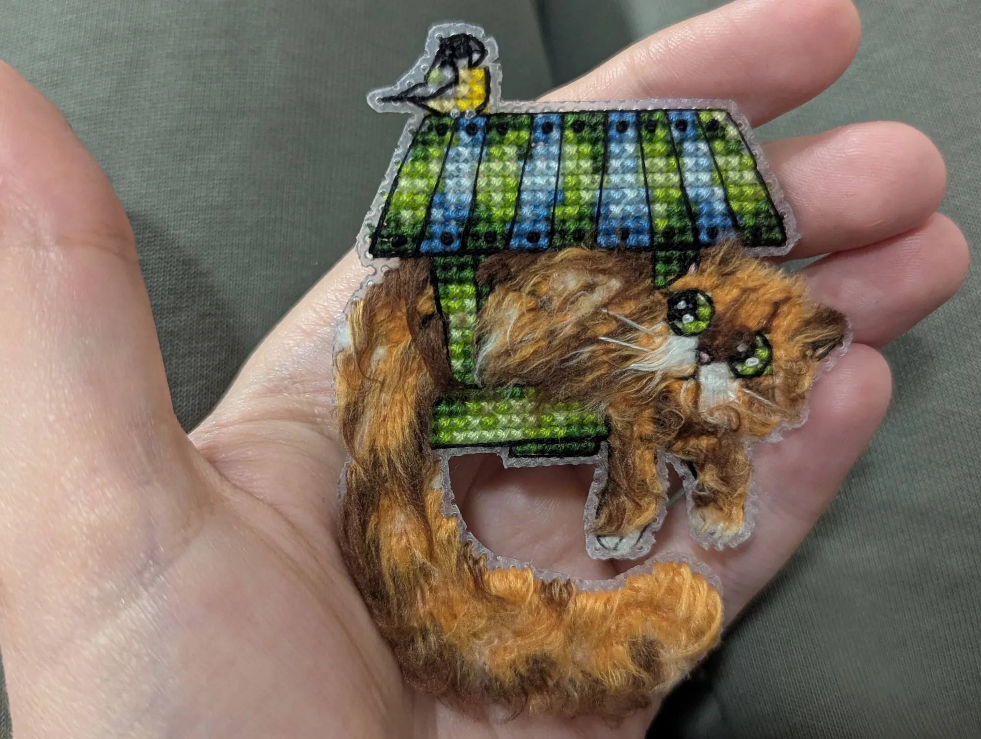 И теперь как следует начёсываю вышитое. Долго и упорно, пока нитки не распушатся в полноценный мех. Бояться нечего: если на изнанке всё закреплено правильно, крестики выдержат этот этап без проблем.