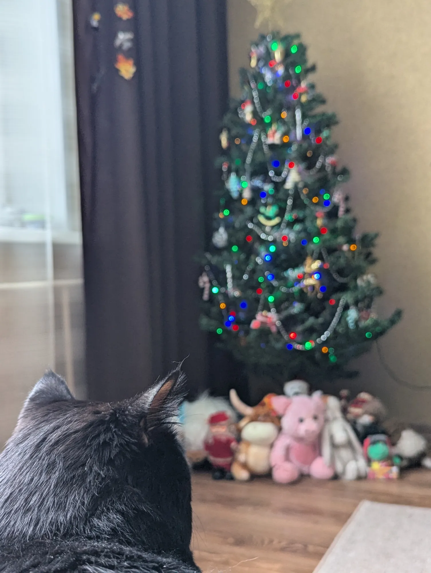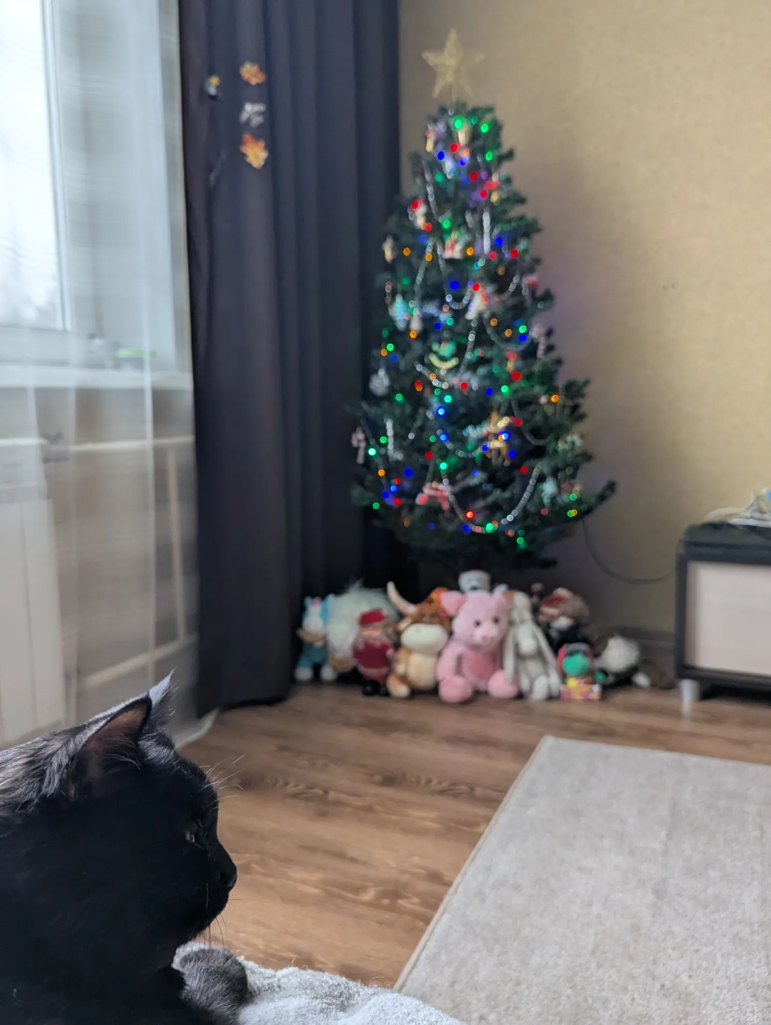 А как у вас? Реагируют скоты коты на ёлку и украшения? Или, может, другой кто?