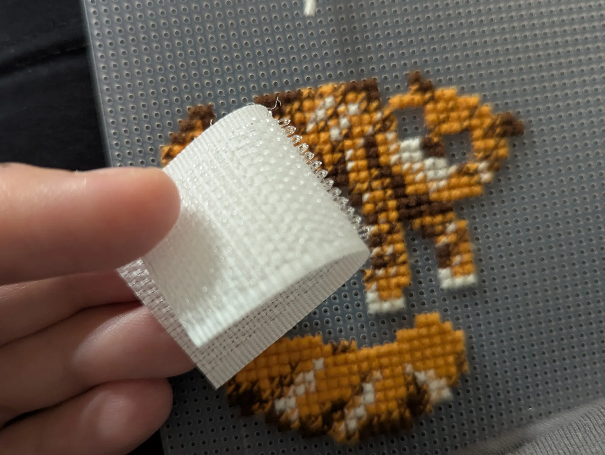 Раз уж у меня сохранились фото процесса, покажу и его. Сначала самое простое: крестики и бэкстич, проходящий прямо по ним.