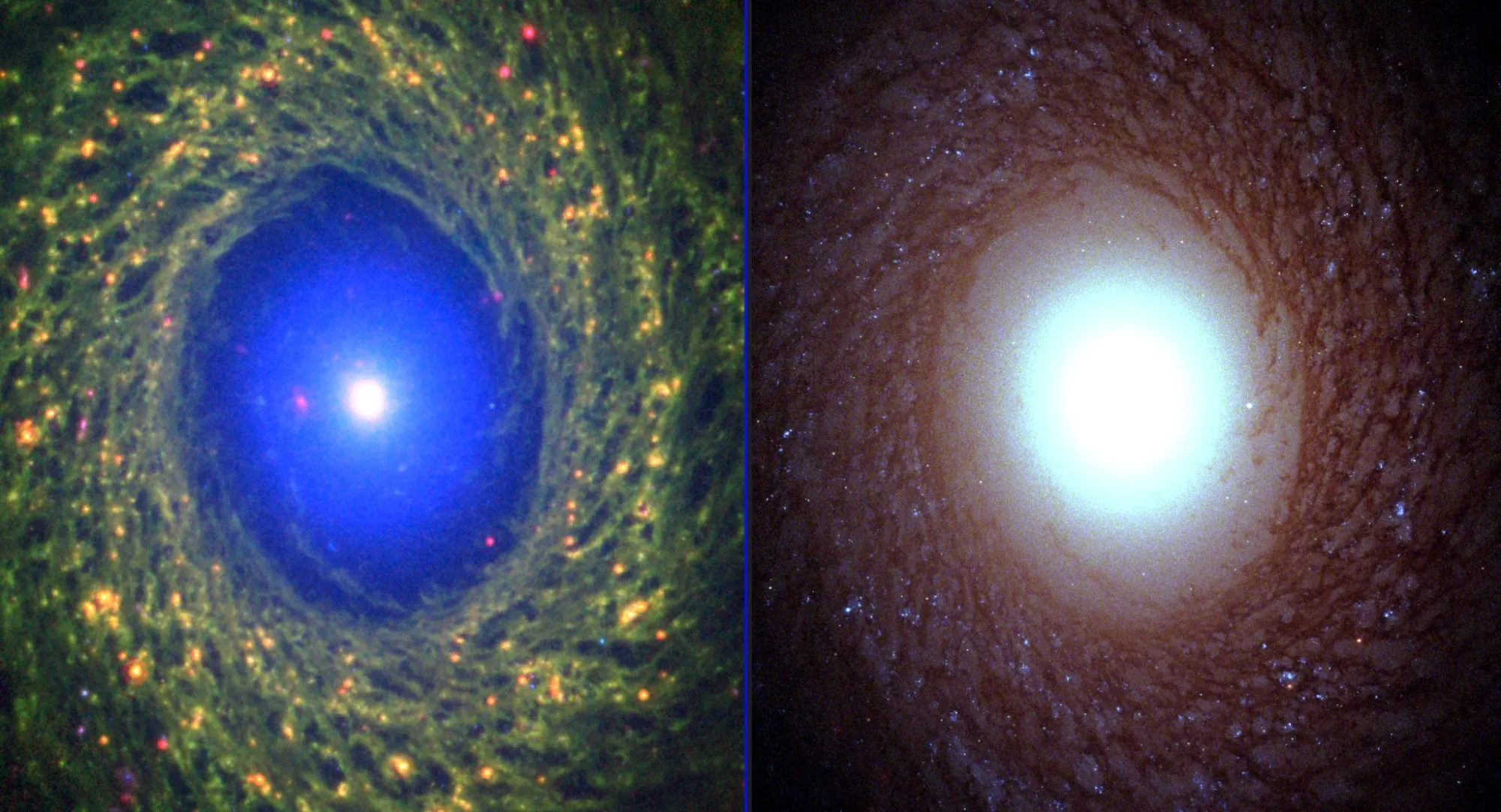 Поэтому, несмотря на колоссальные размеры, по массе NGC 6872 не выделяется на фоне крупных спиральных галактик вроде нашей. Большая часть ее "объема" приходится на чрезвычайно разреженные газовые потоки и области молодых звезд.
